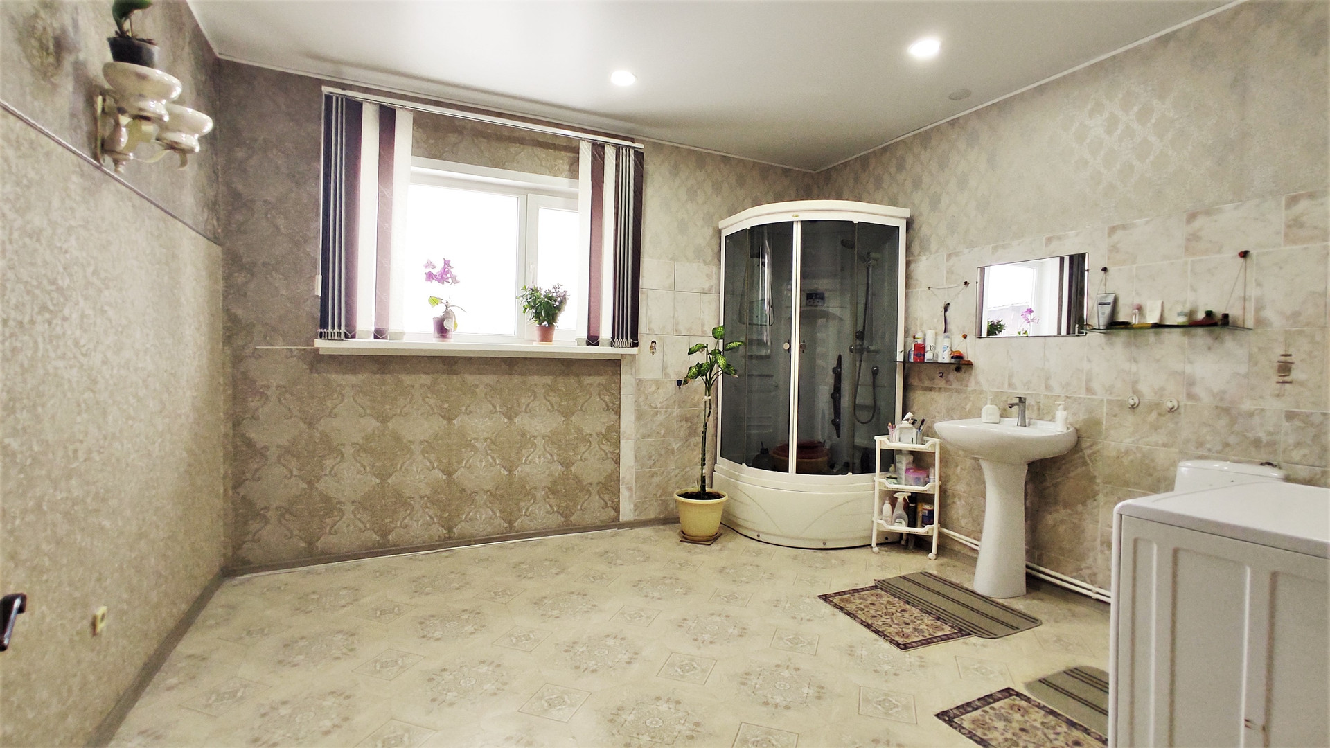 Первый этаж 153 кв.м благоустроенный с ремонтом и мебелью. Комнаты: вместительная кухня-гостиная, большой зал, три спальни, просторная ванная комната, кладовая, коридоры, веранда, входная группа. В комнатах на полу линолеум, в зале ламинат. Просторная ванная комната и туалет совмещенные. Светлые комнаты, много естественного света.