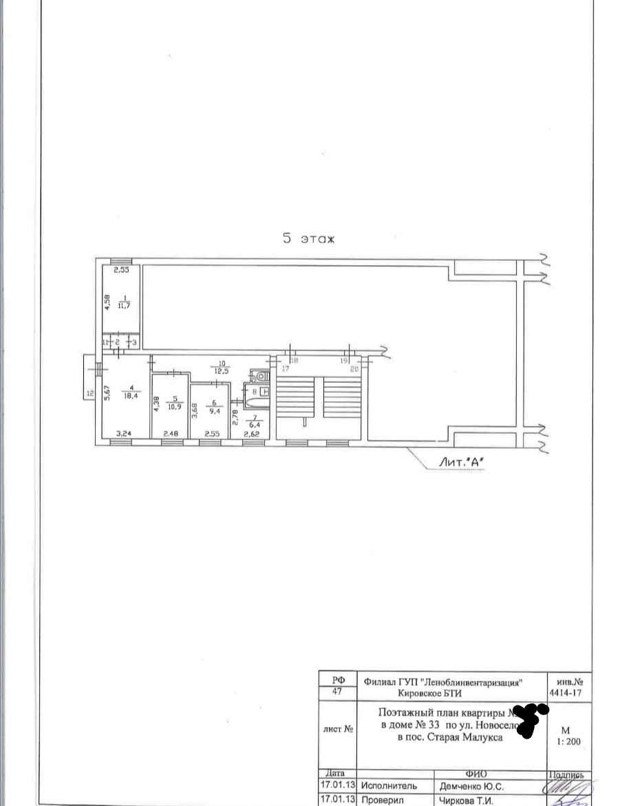 4-комнатная квартира, 75.3 м2, этаж 5 / 5, на продажу в поселке Старая Малукса, улица Новосёлов, 33