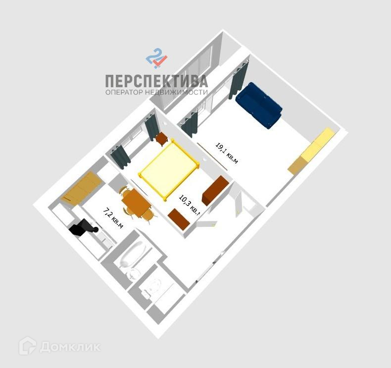 - Комнаты изолированные: 19.1 кв. м и 10.3 кв. м.