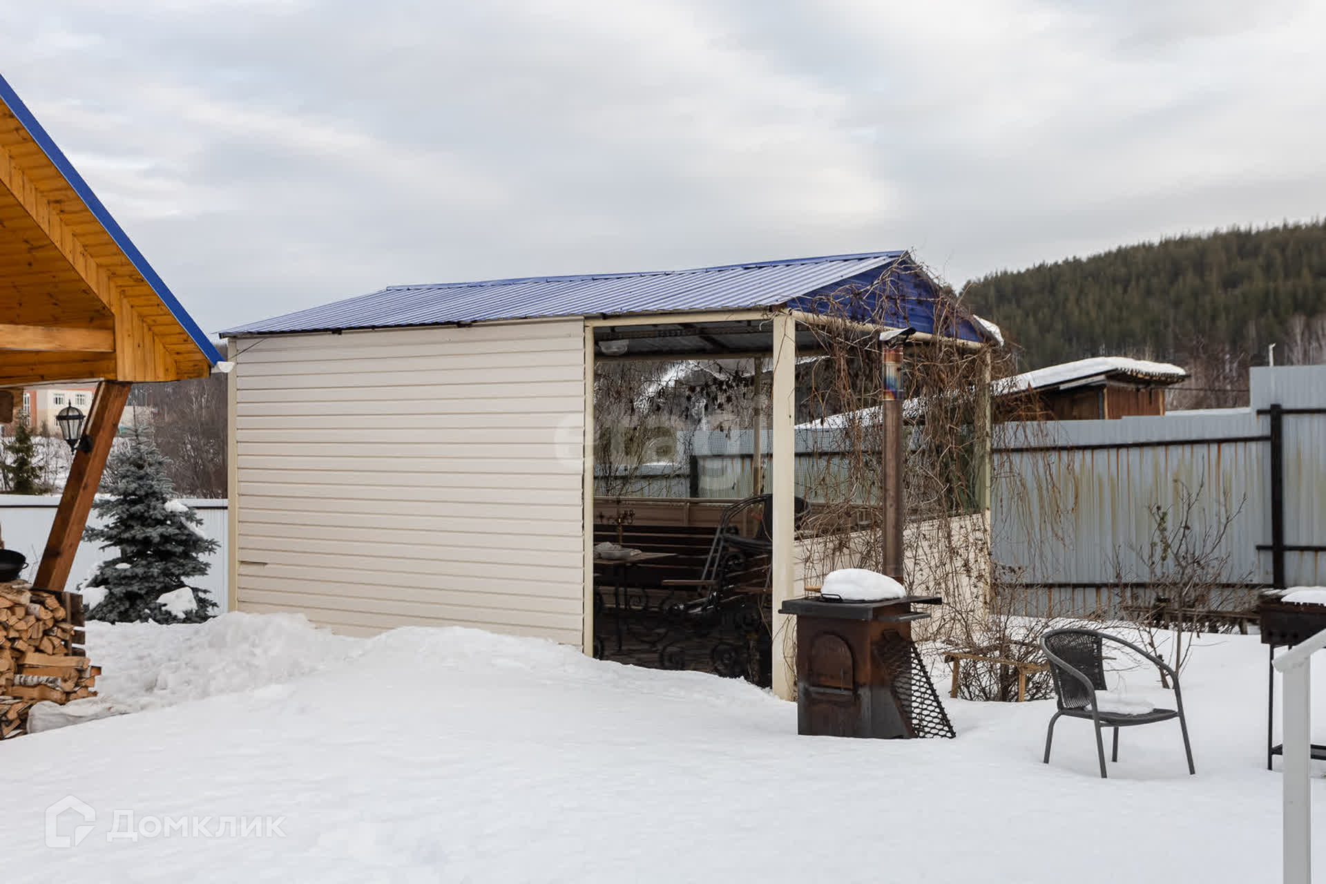 На территории участка имеется гараж, баня из бревна.