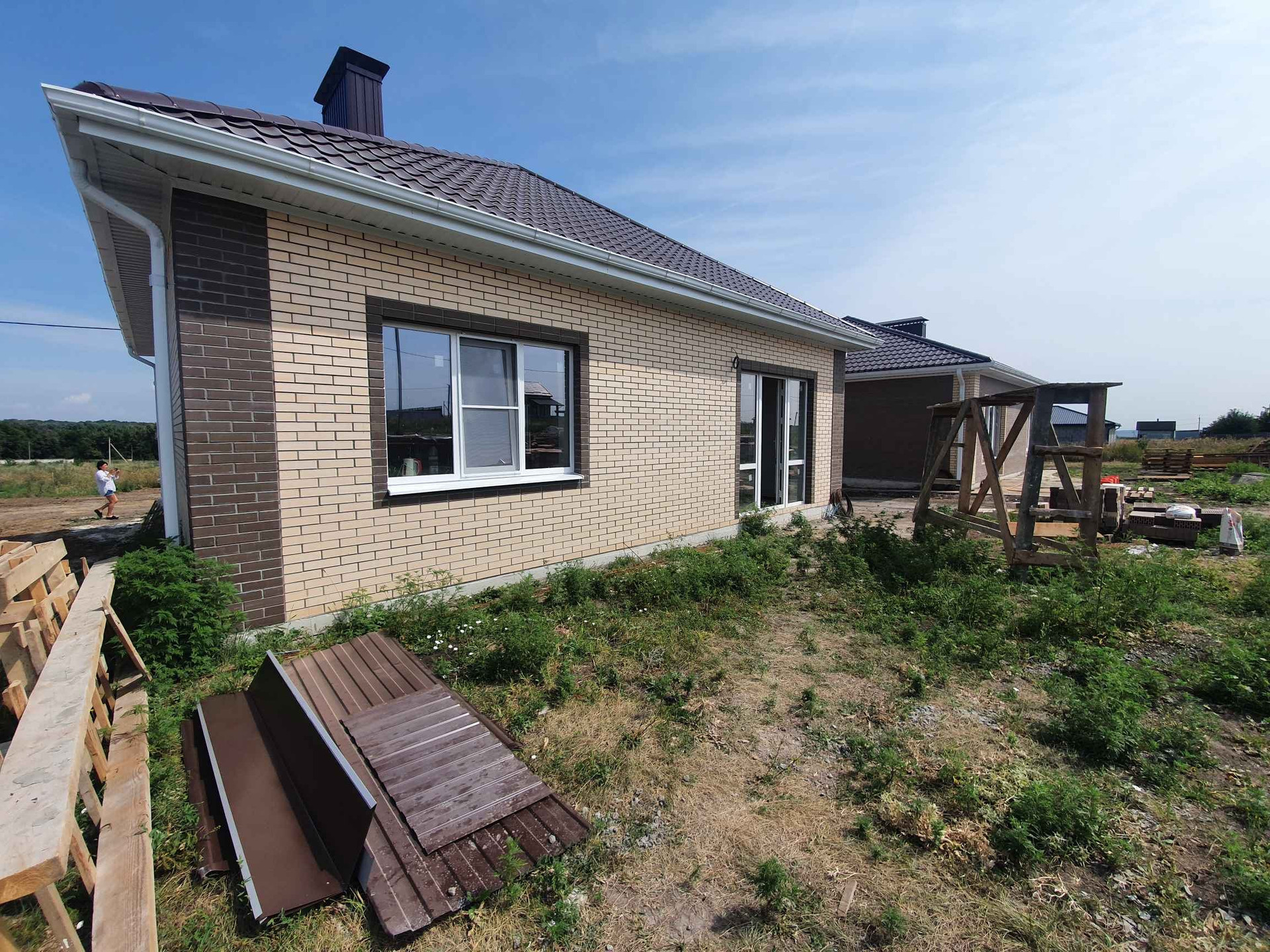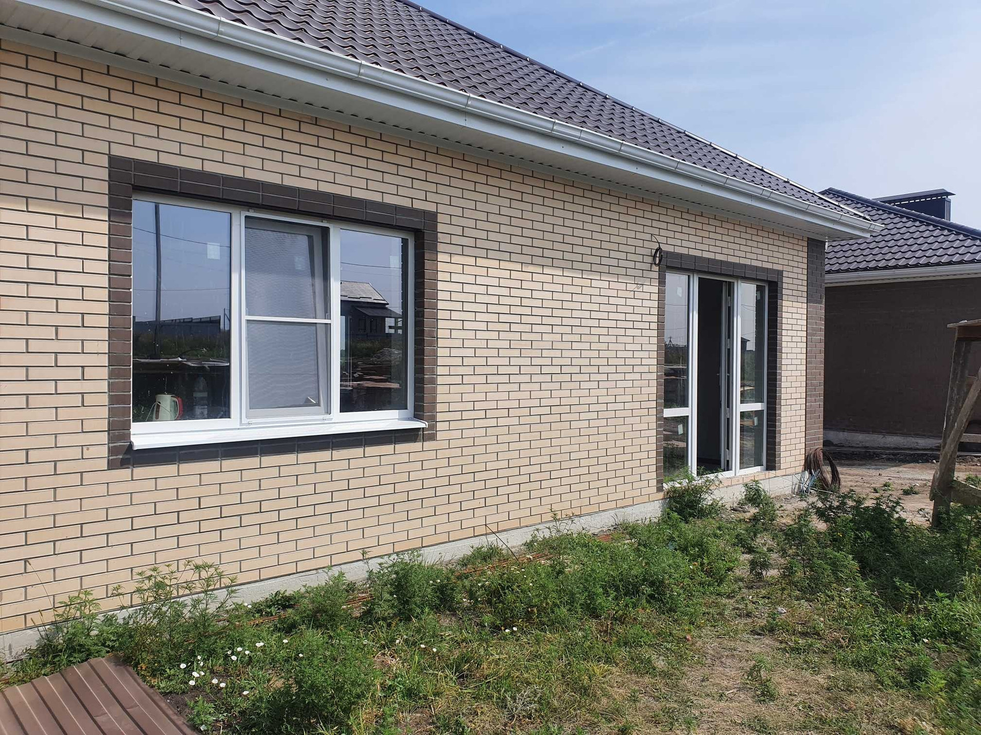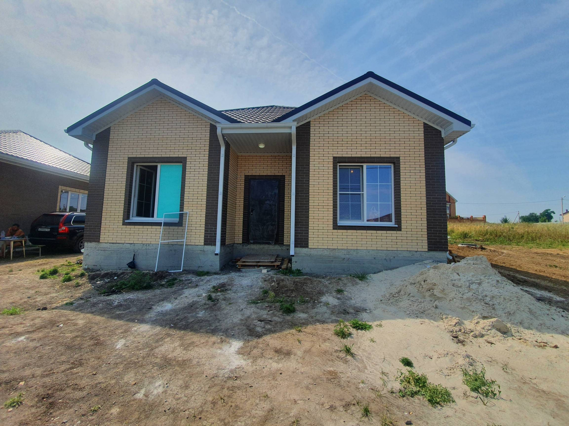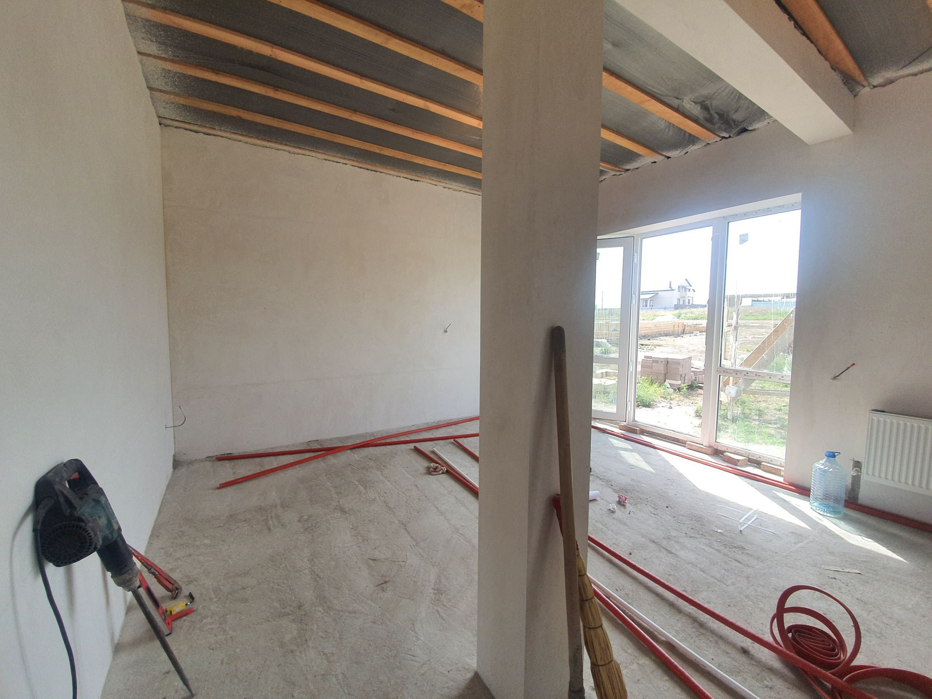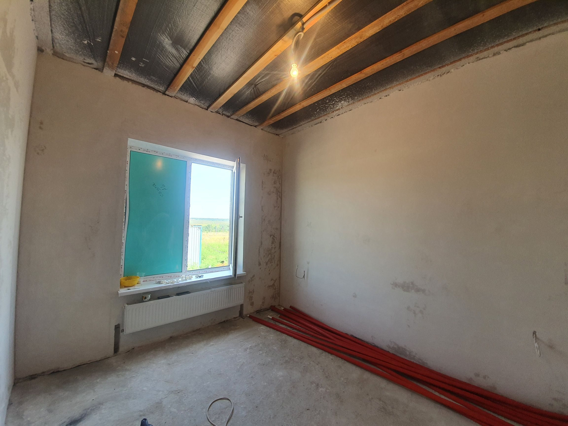 В доме выполнена предчистовая отделка: электропроводка, тёплые полы везде кроме спален, штукатурка стен, стяжка пола. )