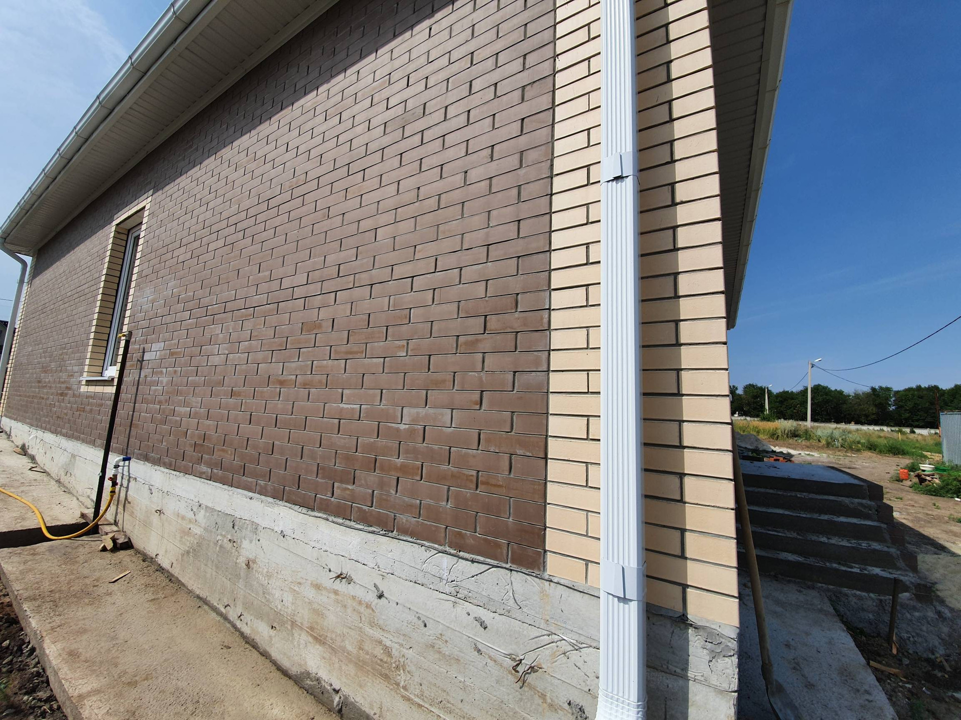 Дом построен из газоблоков+ облицовочный кирпич( имеется воздушная прослойка 5см). Все коммуникации заведены в дом  свет/вода/газ.