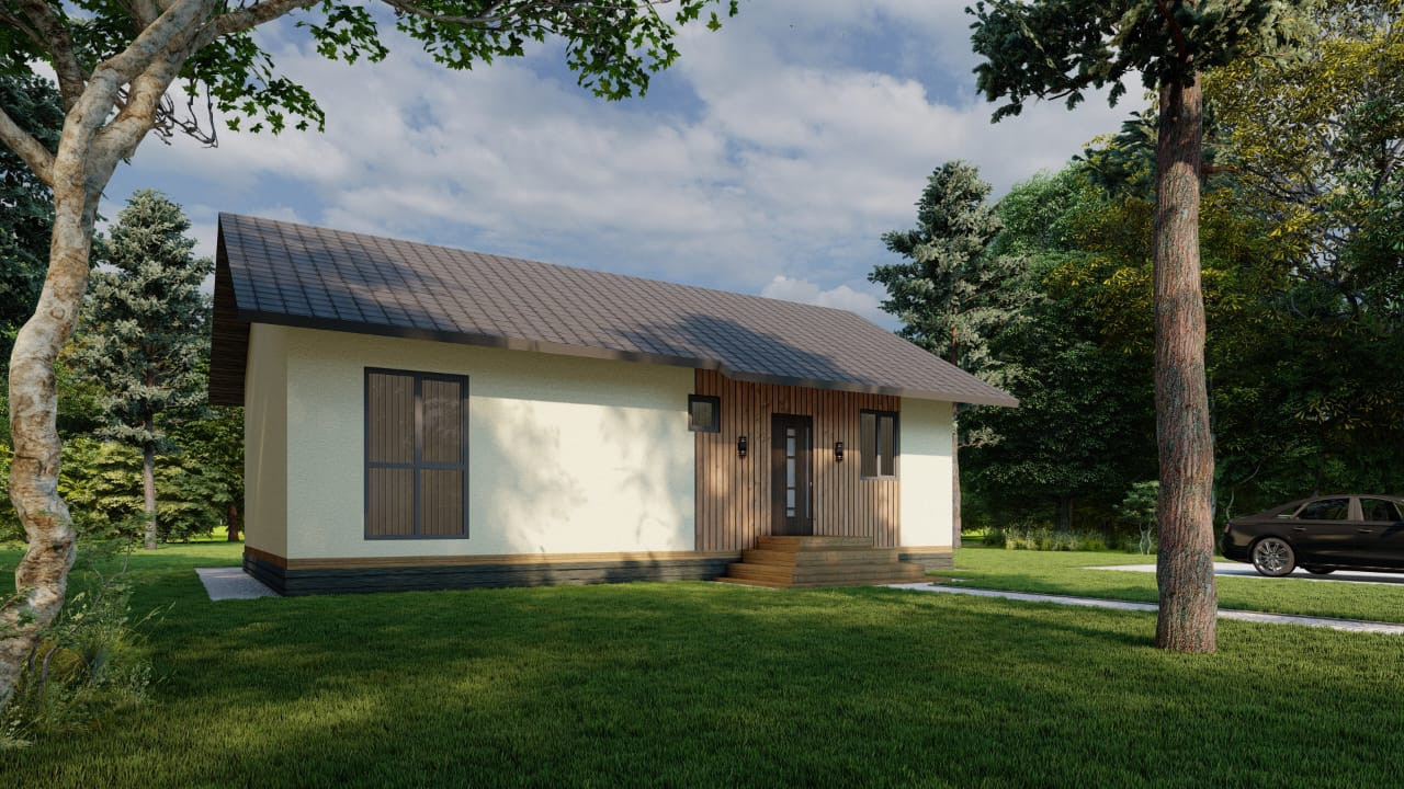 Дом построен по каркасной технологии с использованием надежных современных материалов из сип-панелей.