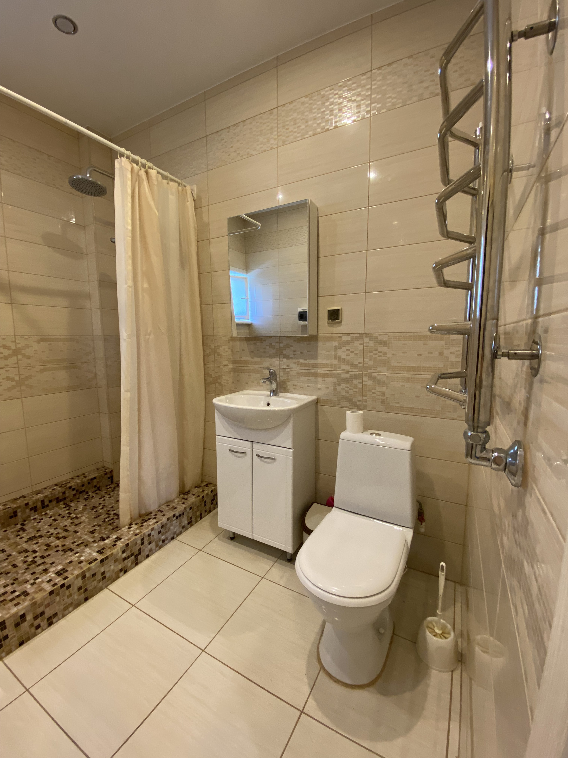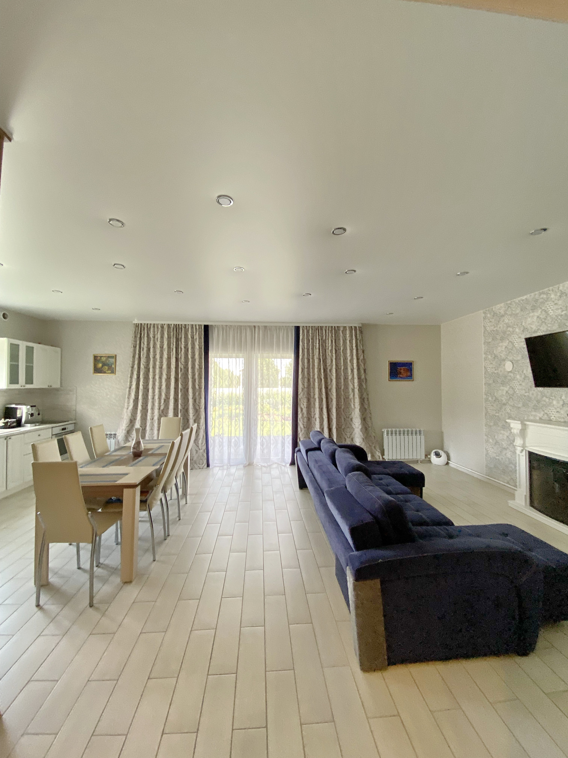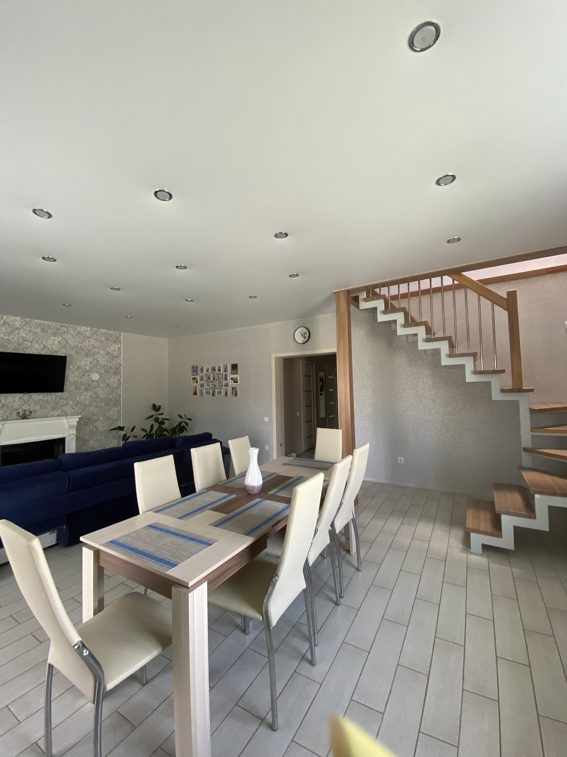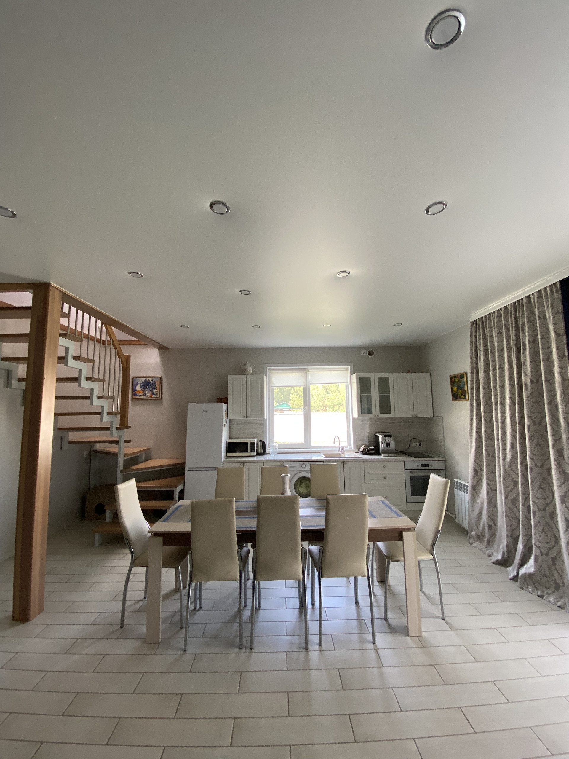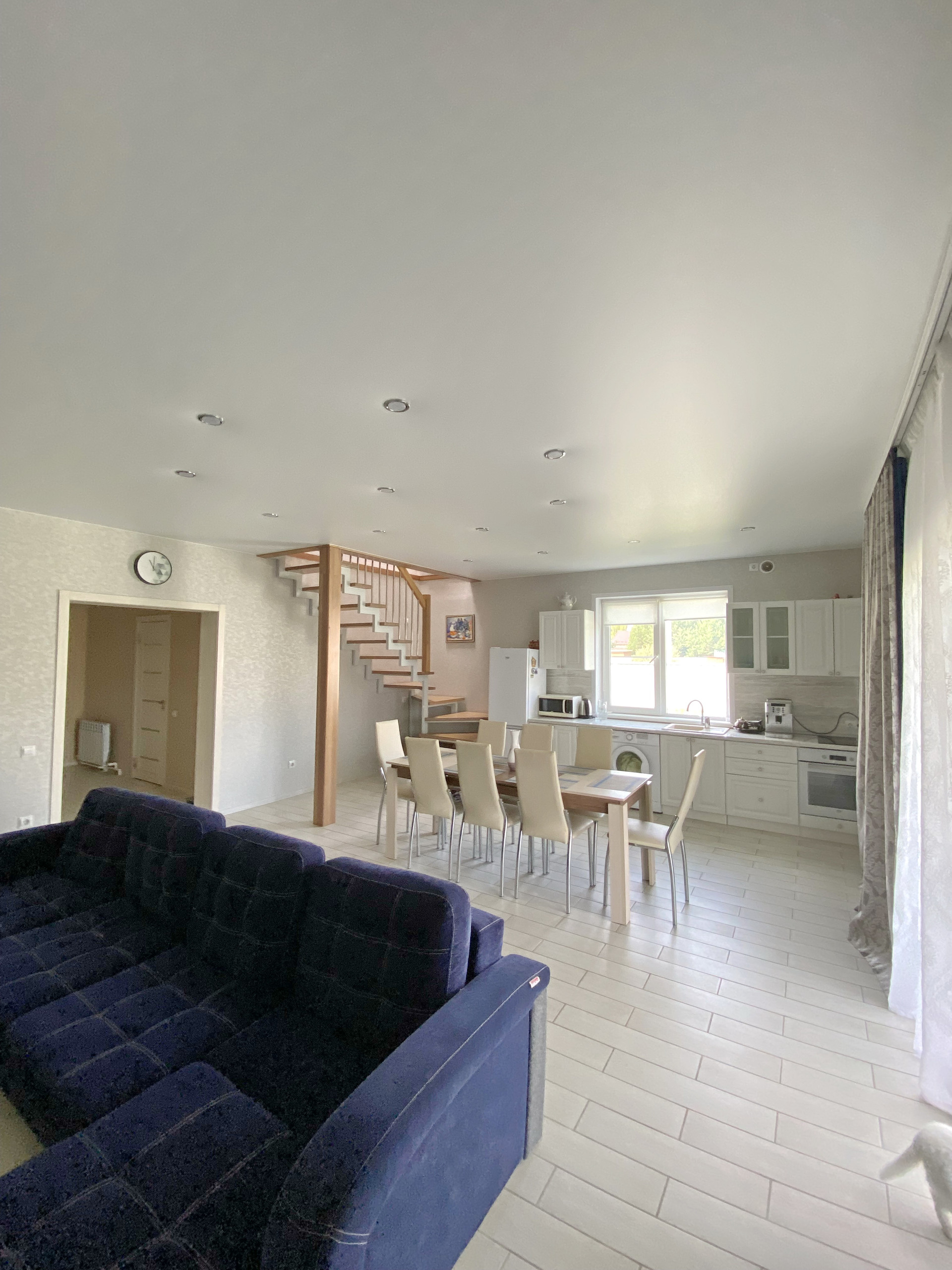 На первом этаже большая кухня-гостиная (50м2) с выходом на террасу.