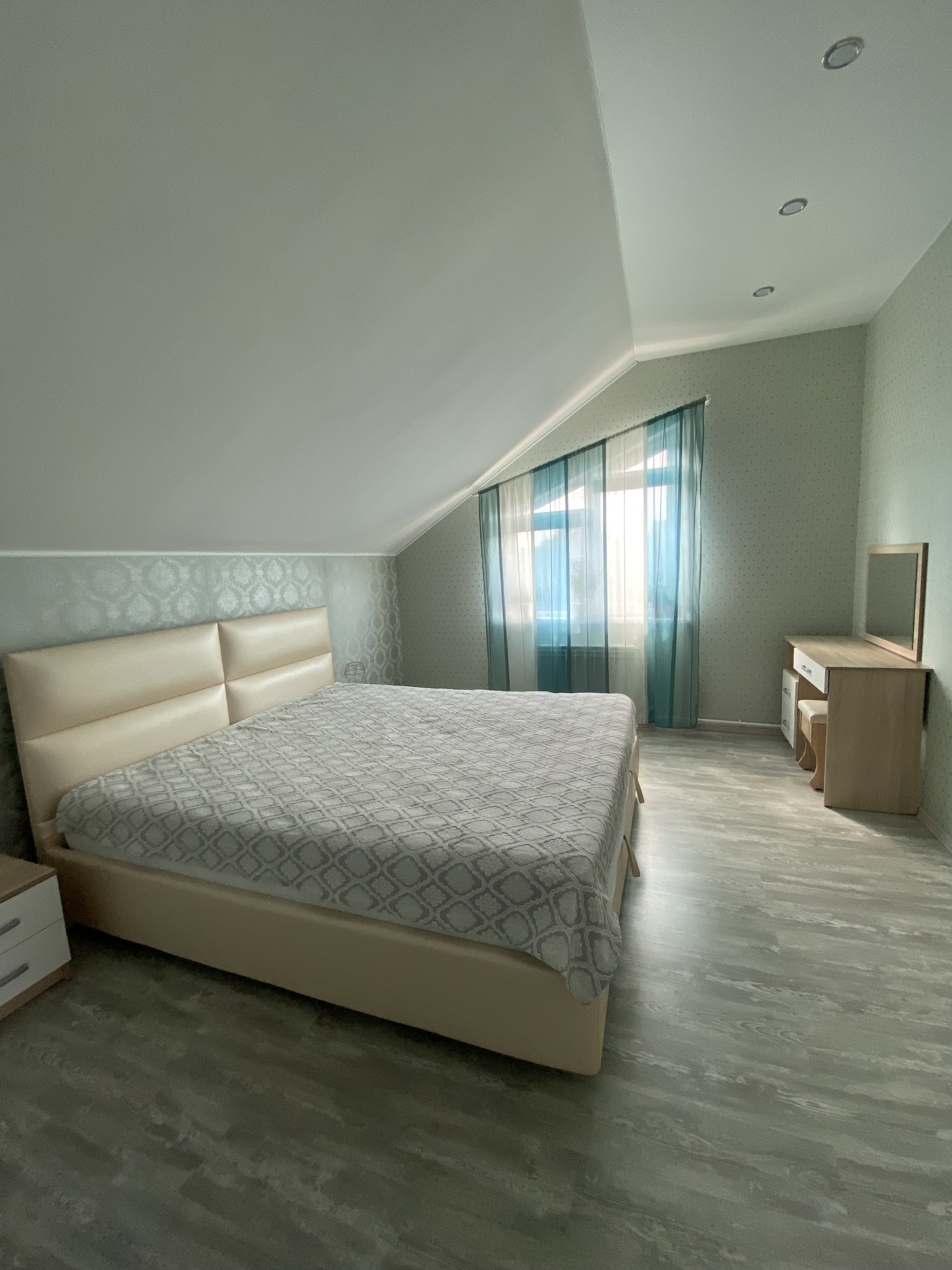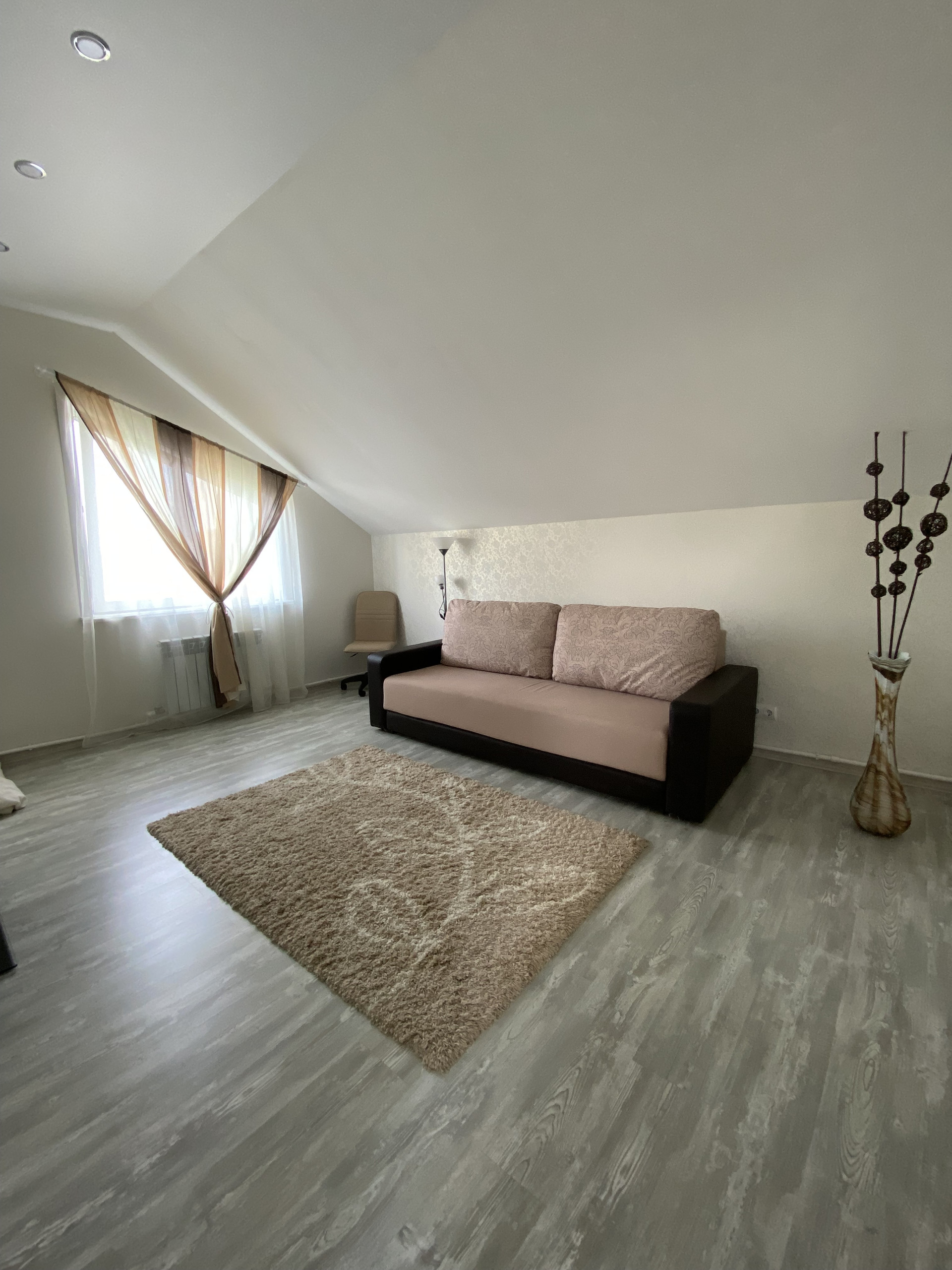 Дом просторный, 2 этажа, размером 10*12, имеется баня-сауна, сан-узел, кладовая, гардеробная и гараж.