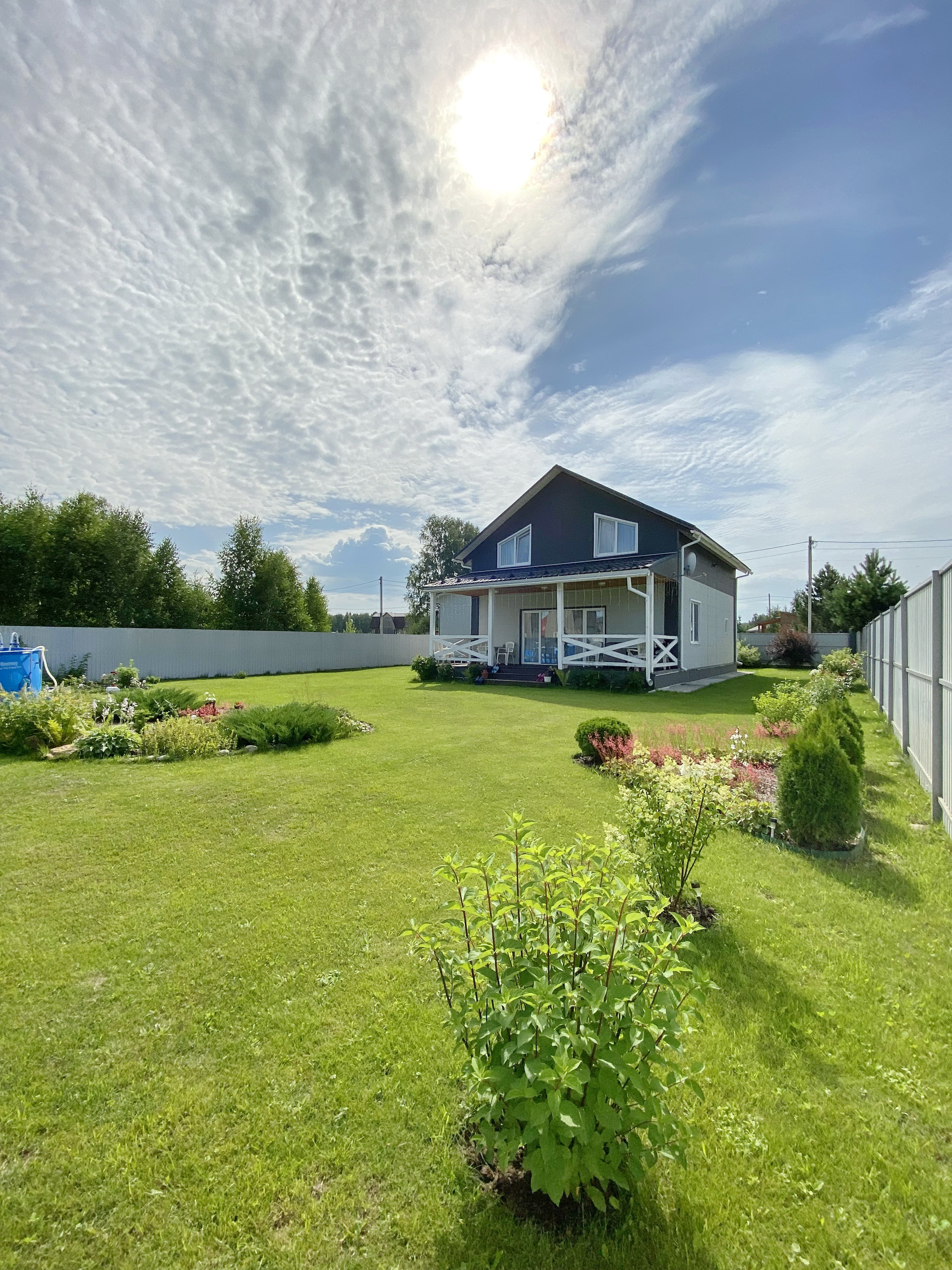Дом 2 эт. 10 ×12 .С террасой 8×3. Каркасник. Гараж. На первом этаже расположен санузел,с сауной.Имеется гардеробная,большой зал с кухней совмещен около 50 м.кв .В доме сделан качественный ремонт,дом продается с мебелью.На 2 этаже имеется 2 большие спальни по 18 кв.м,одна комната свободной планировки 18 кв.м и большой санузел 12 кв.м. Участок 8 соток.Из них 1 сотка под небольшой огород с грядками и плодовыми деревьями и кустами.Вся остальная территория засеяна газоном,сделаны клумбы с декоративными кустами,гортензиями,туями и можевельниками. Есть каркасный бассейн на 16м.куб. Отопление электричеством,с умной розеткой.Ежемесячный платеж за свет, 5.000руб.