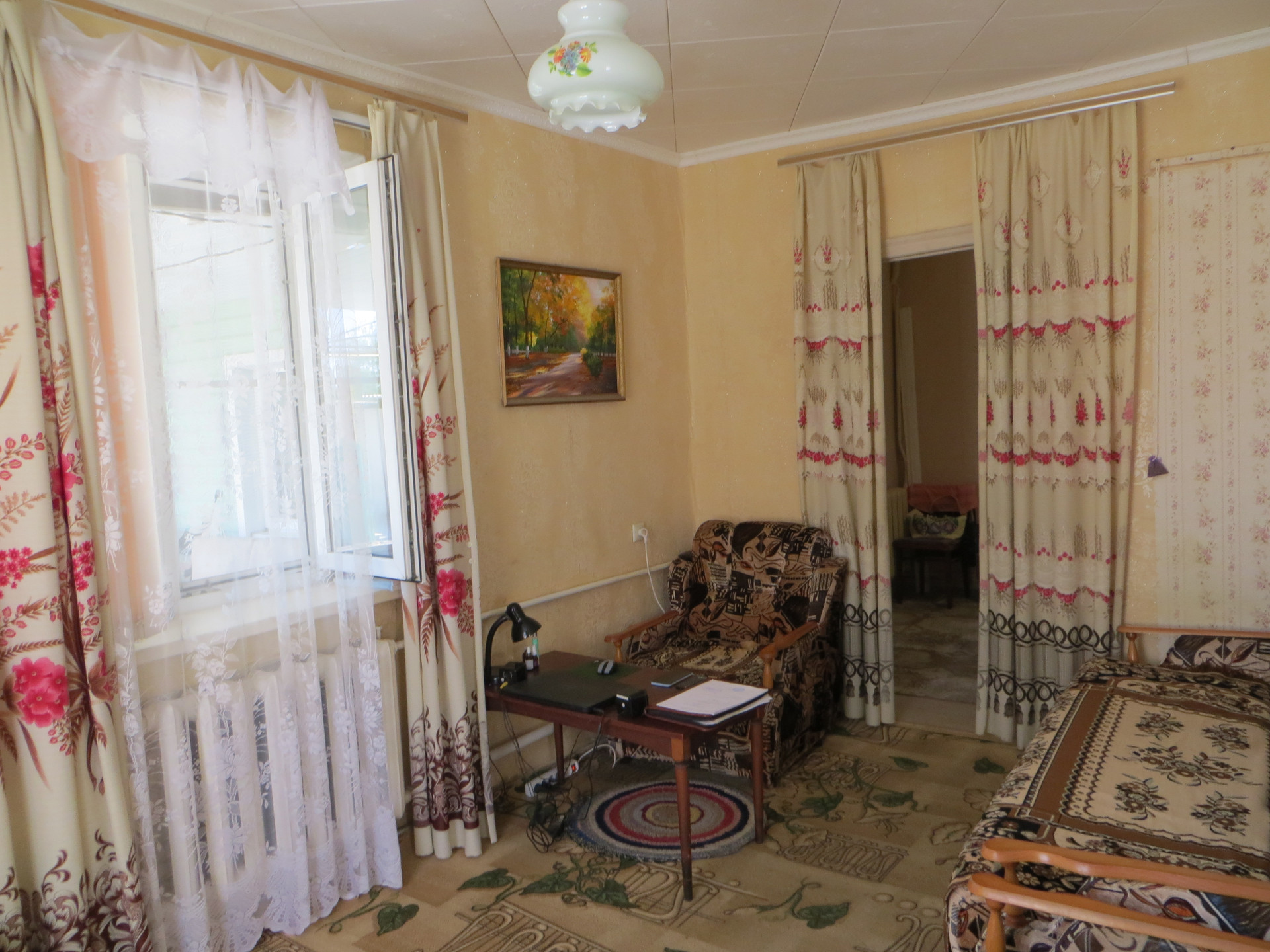 ___ Год постройки - 1971. Материал постройки – кирпич + сайдинг с утеплителем. Крыша новая – металлопрофиль. Этажей – 1. Высота потолка – 2,60 м, полы – доска + линолеум. Два санузла в доме. Канализация – местная. Отопление – газовый котел, есть сплит-системы. Везде порядок и металлопластиковые окна.