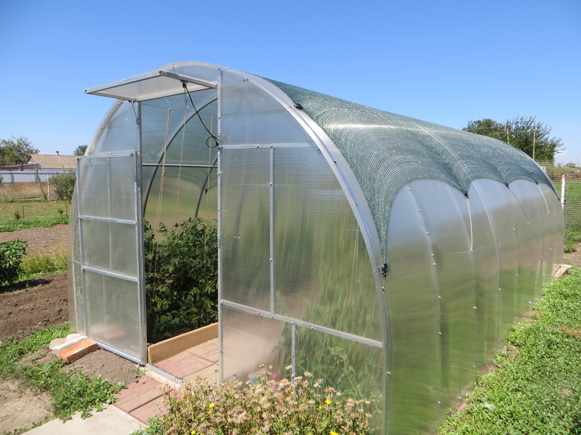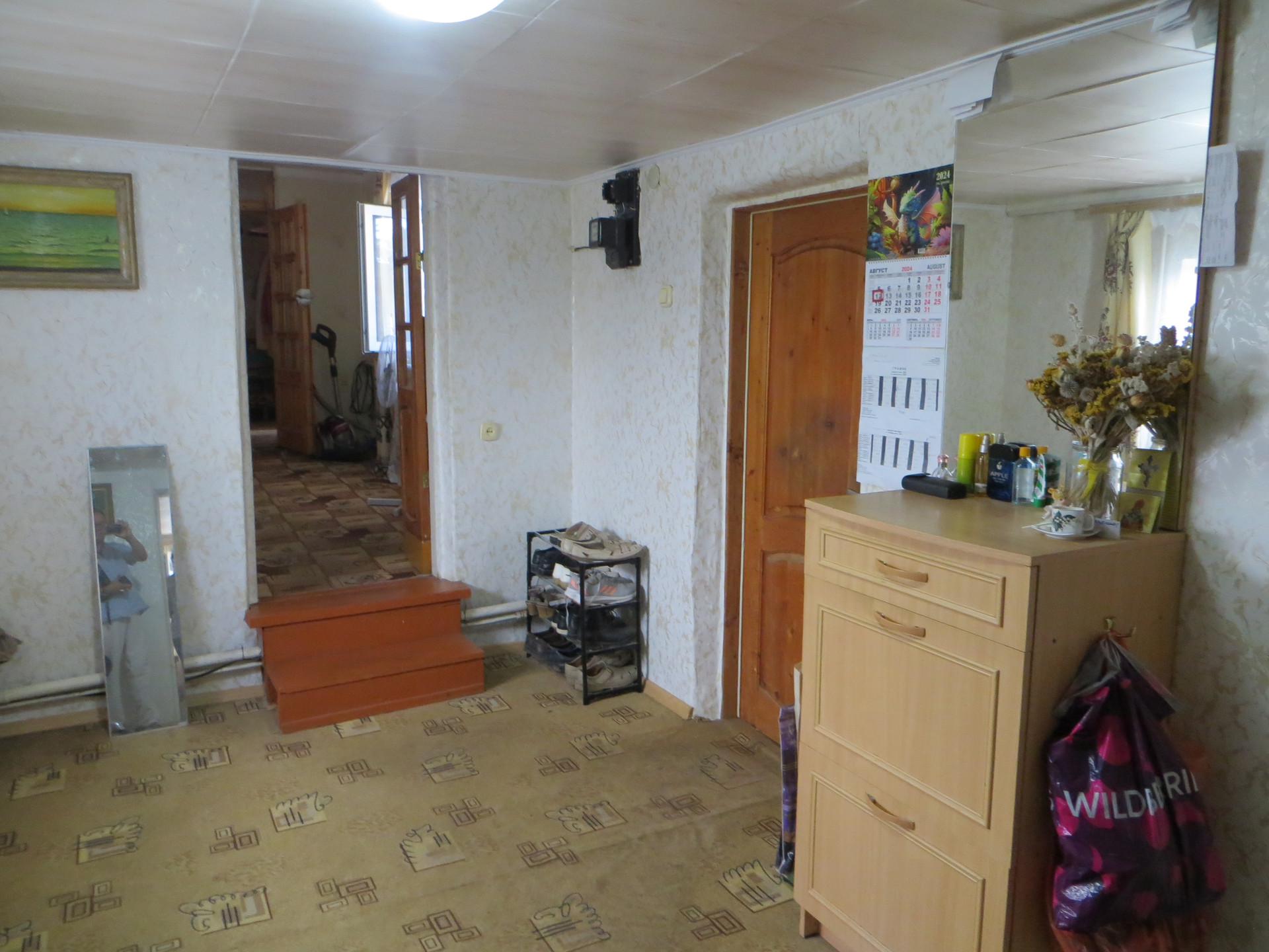 ___ Въезд, большой асфальтированный двор, участок 15 соток. Другие постройки: гараж с ямой и мансардной комнатой; погреб; навес; хорошая теплица; мастерская; водная скважина; площадка для бассейна; мангал; хозяйственные постройки. Есть молодой и плодоносящий сад. Огород, виноград, много цветов. Покрытие подъезда к дому - асфальт.