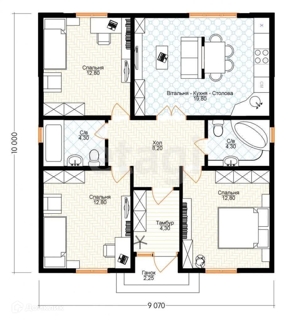 Общая площадь 90 м2