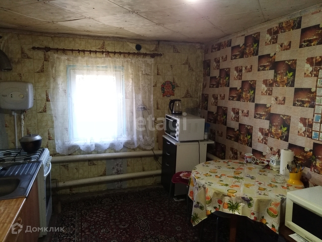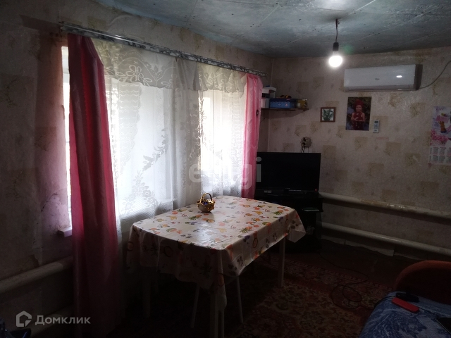 Дом состоит из просторной кухни - гостиной (18 м2), зала и трех изолированных комнат. Сан. узел совмещен с душевой кабиной. В доме требуется косметический ремонт. Дом саманный (глинобитный), а пристроенная кухня-гостиная - блочная. Дом очень теплый зимой, а летом хорошо держит прохладу. Окна металлопластиковые.
