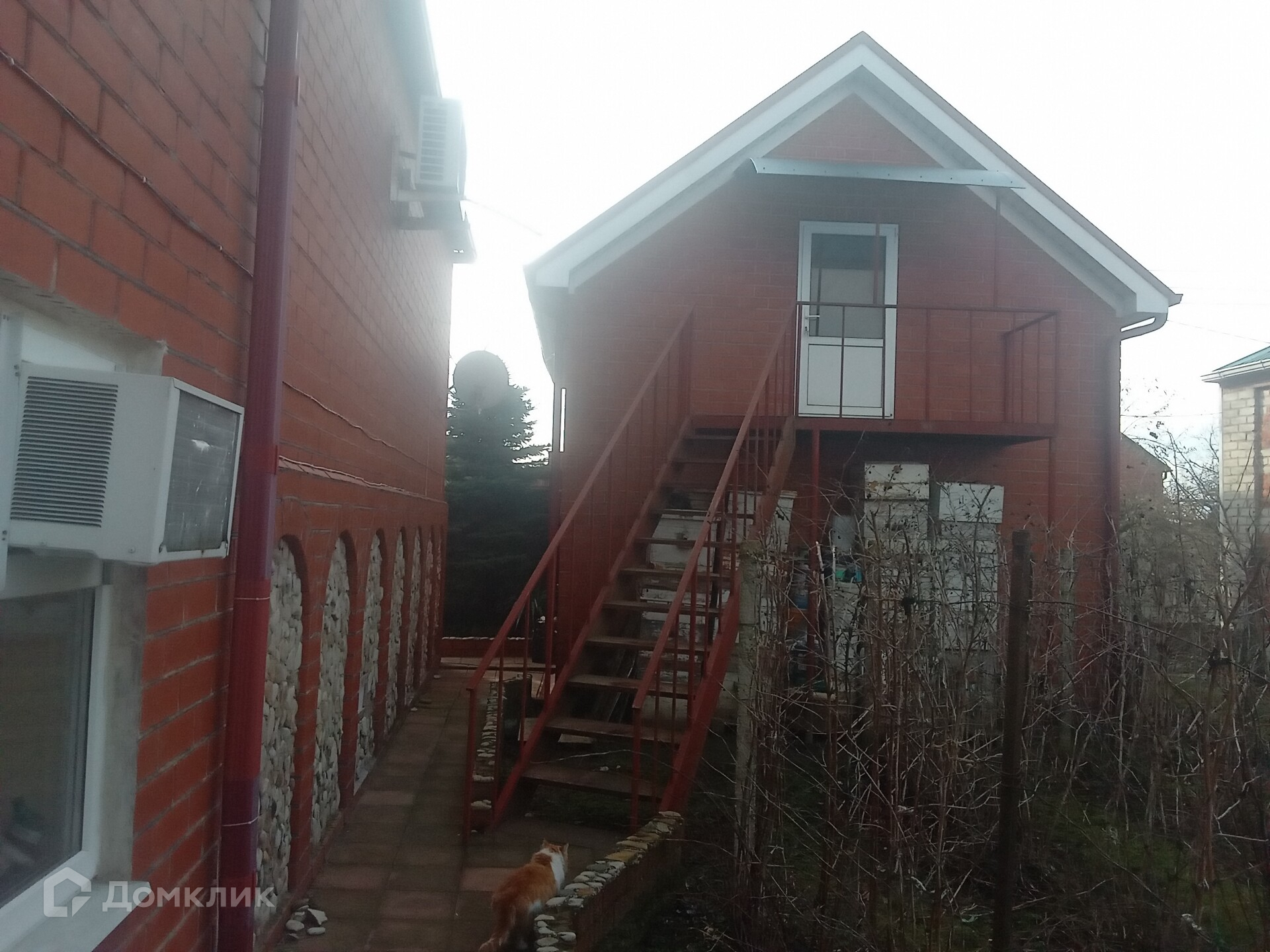 Ещё есть двухэтажный здание: на первом этаже большой гараж заезд с улицы и есть вход в гараж со двора. На второй этаж отдельный вход со двора металлическая лестница.