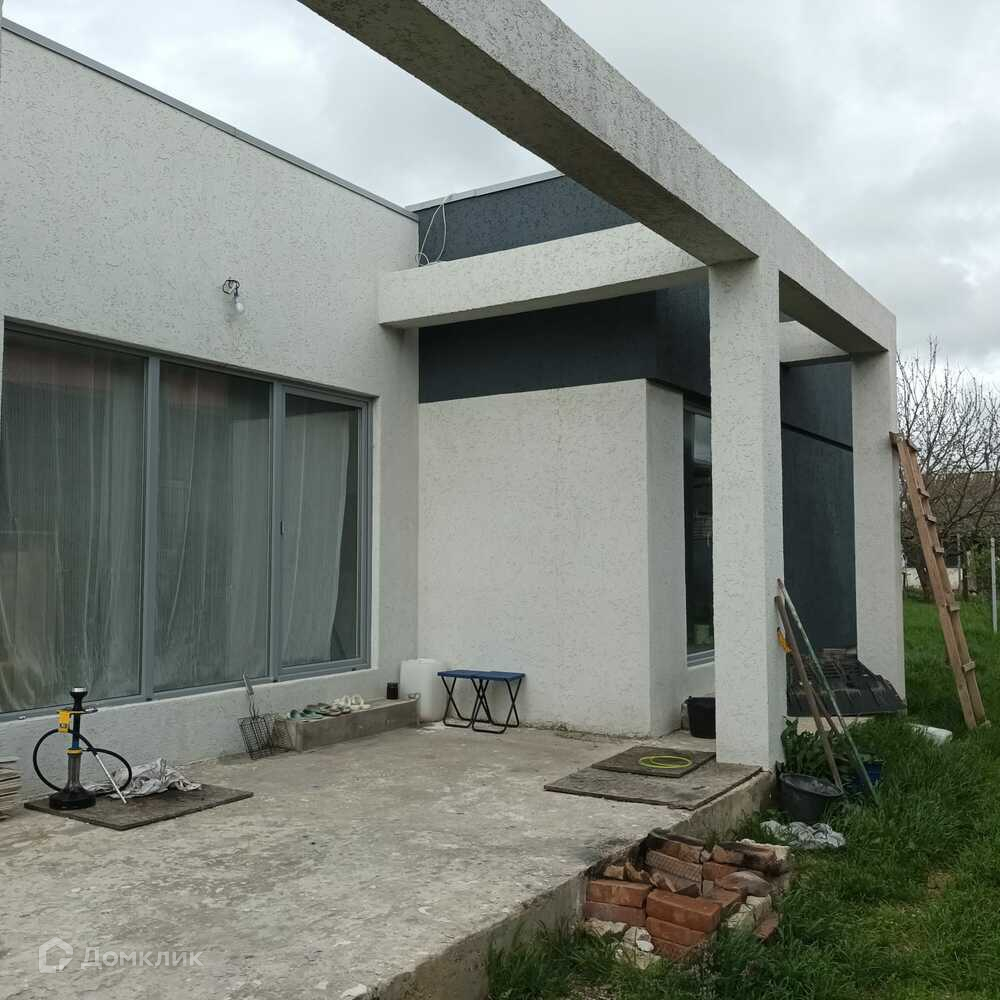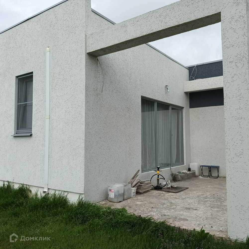 Объект №40101. В посёлке Стрелка Темрюкского района предлагаем к продаже одноэтажный дом в стиле Хай Тек общей площадью 104 м2 с эксплуатируемой крышей на участке 5 сот. ИЖС. Дом на монолитной плите, выполнен по канадской технологии, утеплён минеральной ватой 10 и 5 см. Коммуникации - 15 кВт, скважина, насосная станция с системой очистки, накопитель для воды ёмкостью 500 л. Газ по меже. В доме подготовлены стены для финишной отделки,  закончен ремонт в ванной комнате, уложены керамогранитные полы в холле и  гостиной. По всему дому тёплые полы. Отопление от экономичного электрического котла. Планировка - 3 спальни по 15 м, кухня-гостиная - 20 м, выход на террасу из гостиной и спальни. Дом очень тёплый, все строительные работы выполнены профессиональными строителями, специализирующимися на строительстве домов по канадской технологии, с опытом более 15 лет. Продажа в связи с переездом. Посёлок Стрелка с развитой инфраструктурой, есть школа, детский сад, сетевые магазины, хозяйственные и строительные рынки, поликлиника, администрация, Храм. Регулярное сообщение с районным центром - г. Темрюк (10 км). Строится автомагистраль Таврида, которая соединит Крым и Краснодар. Показ в любое время. Звоните!