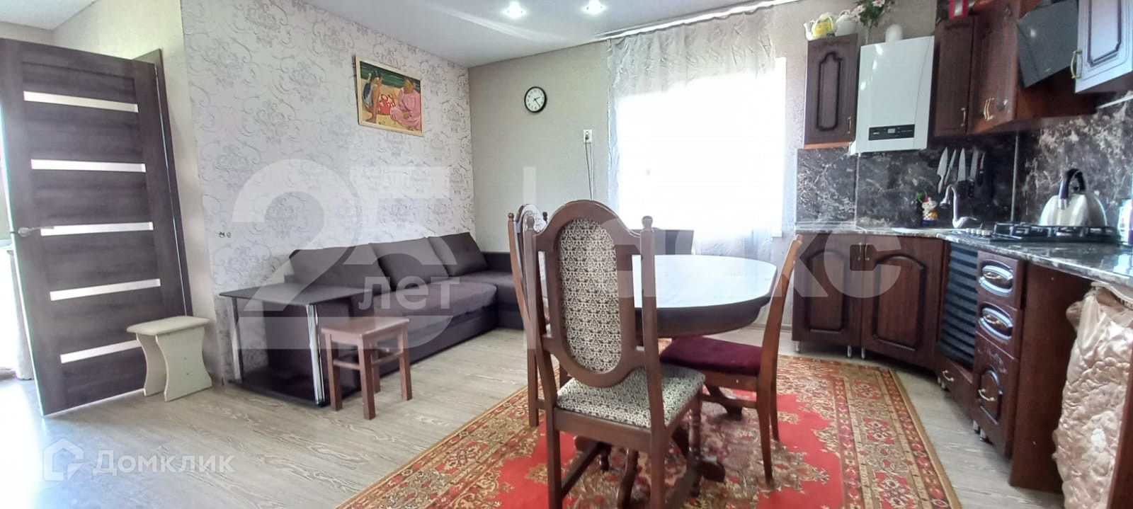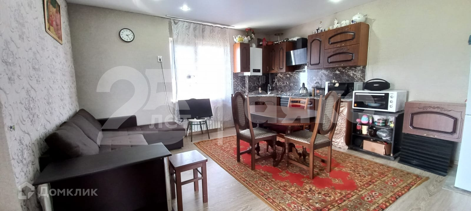 Расположен на участке 5,55 соток, в доме большая кухня-гостиная 20,58м2 и две изолированные  комнаты. Выполнен ремонт, при продаже мебель остается по согласованию.