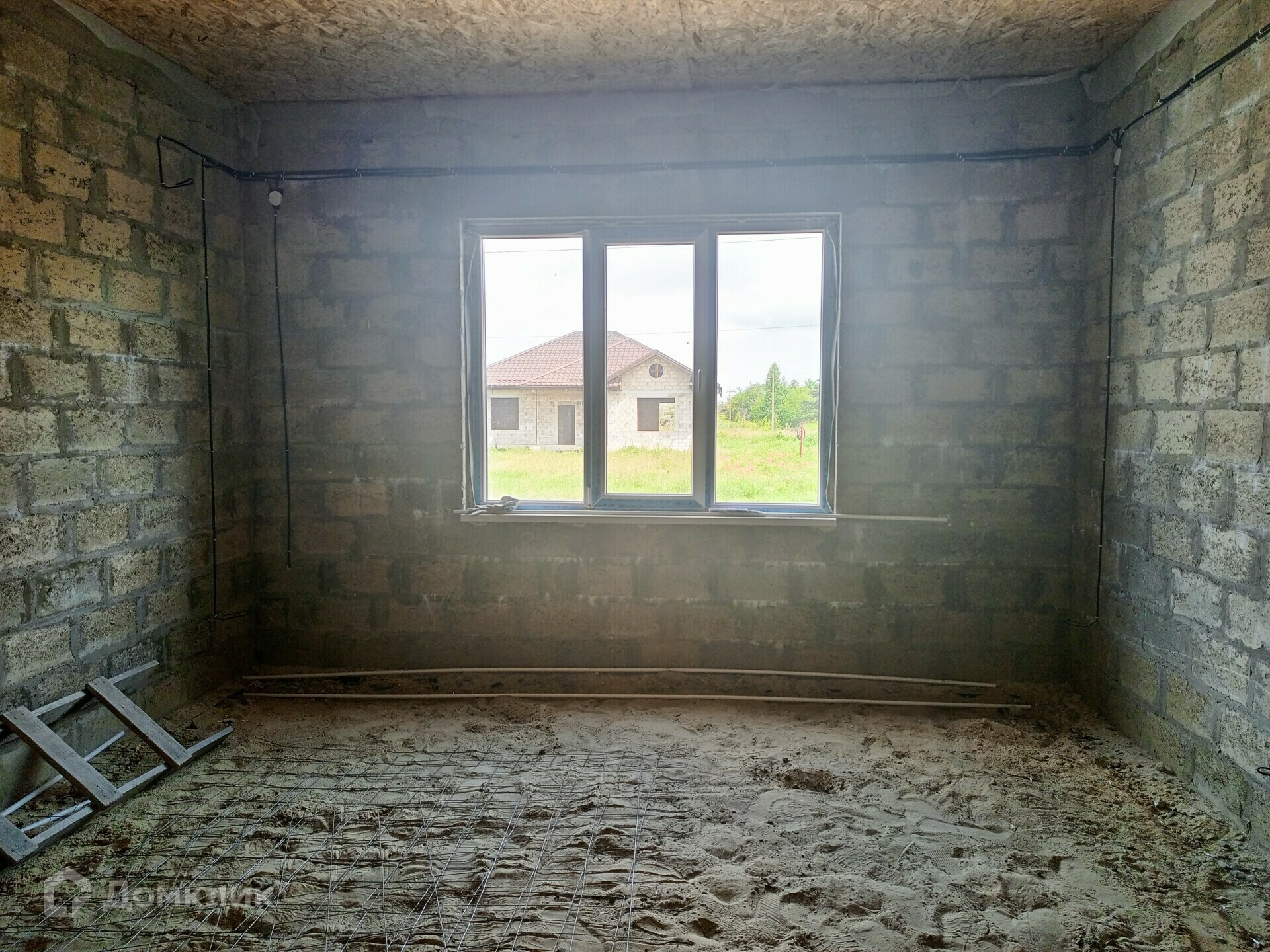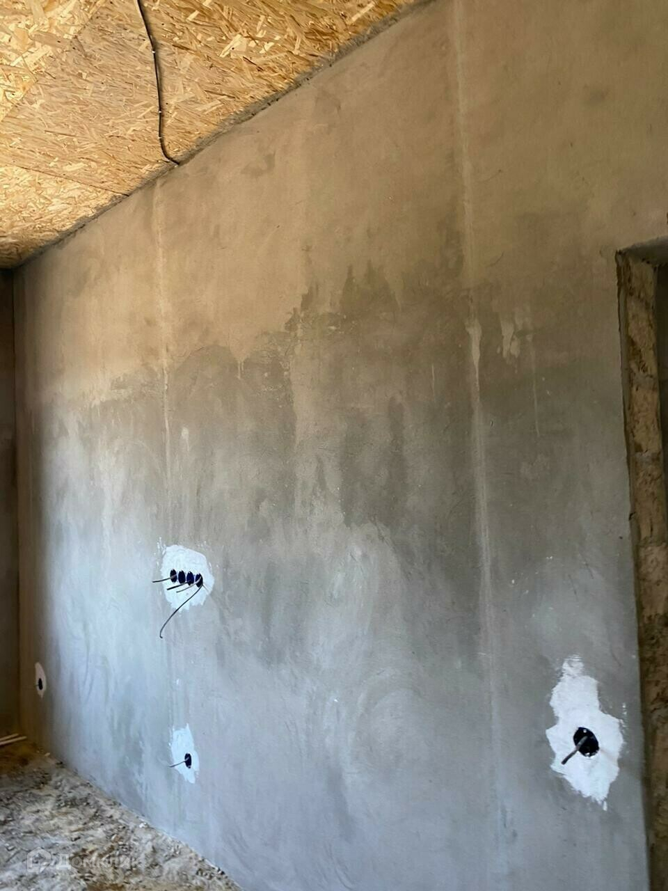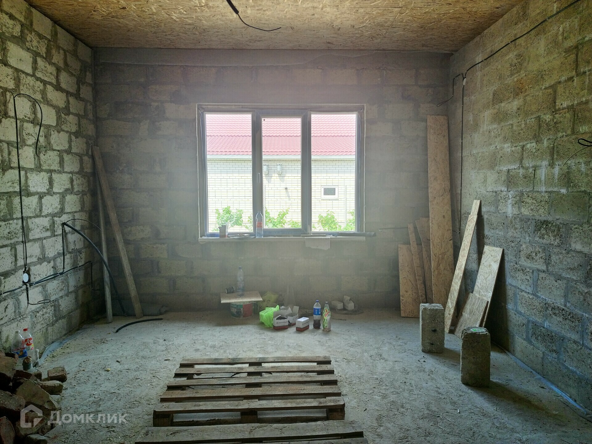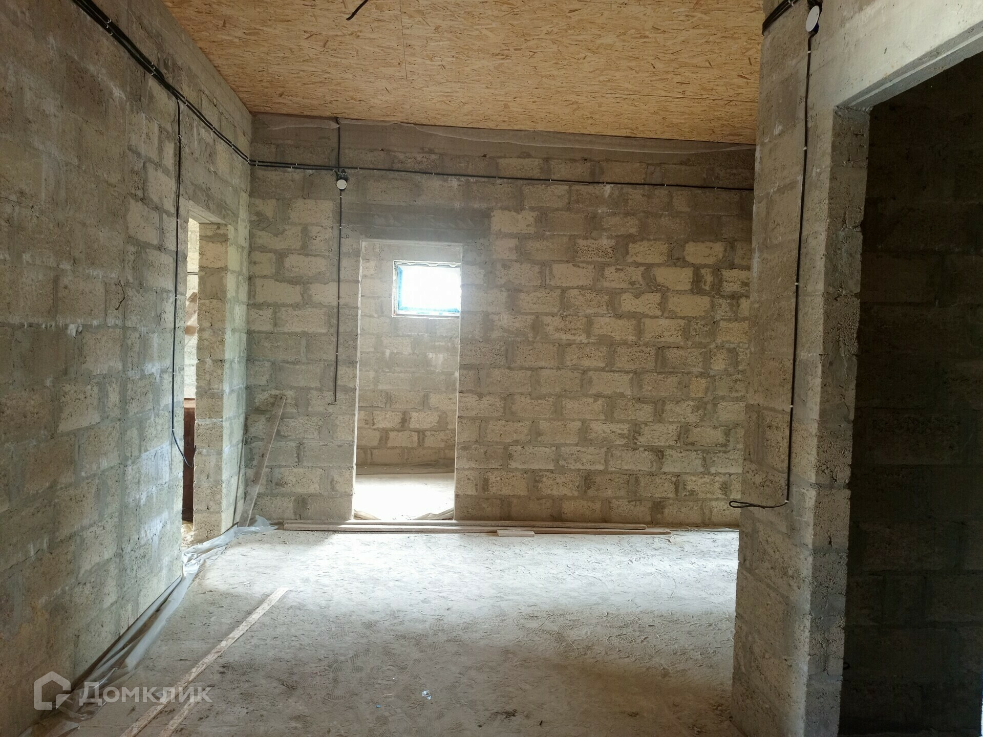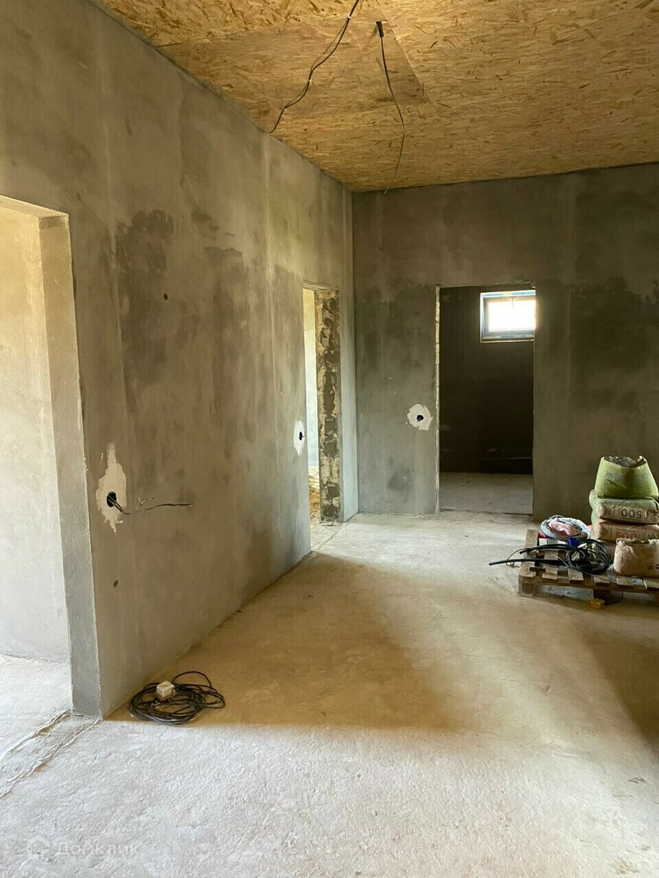Отделка в доме: Залит черновой пол там, где будет проходить теплый пол. Стены отштукатурены, по всему дому проведена проводка. Потолок утеплен и подбит OSB-9. Входная дверь металлическая, по всему дому установлены качественные окна VEKA атермальное остекление, ширина профиля 70 мм., цвет профиля шоколадный.
