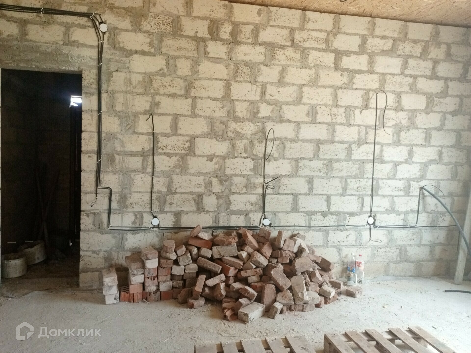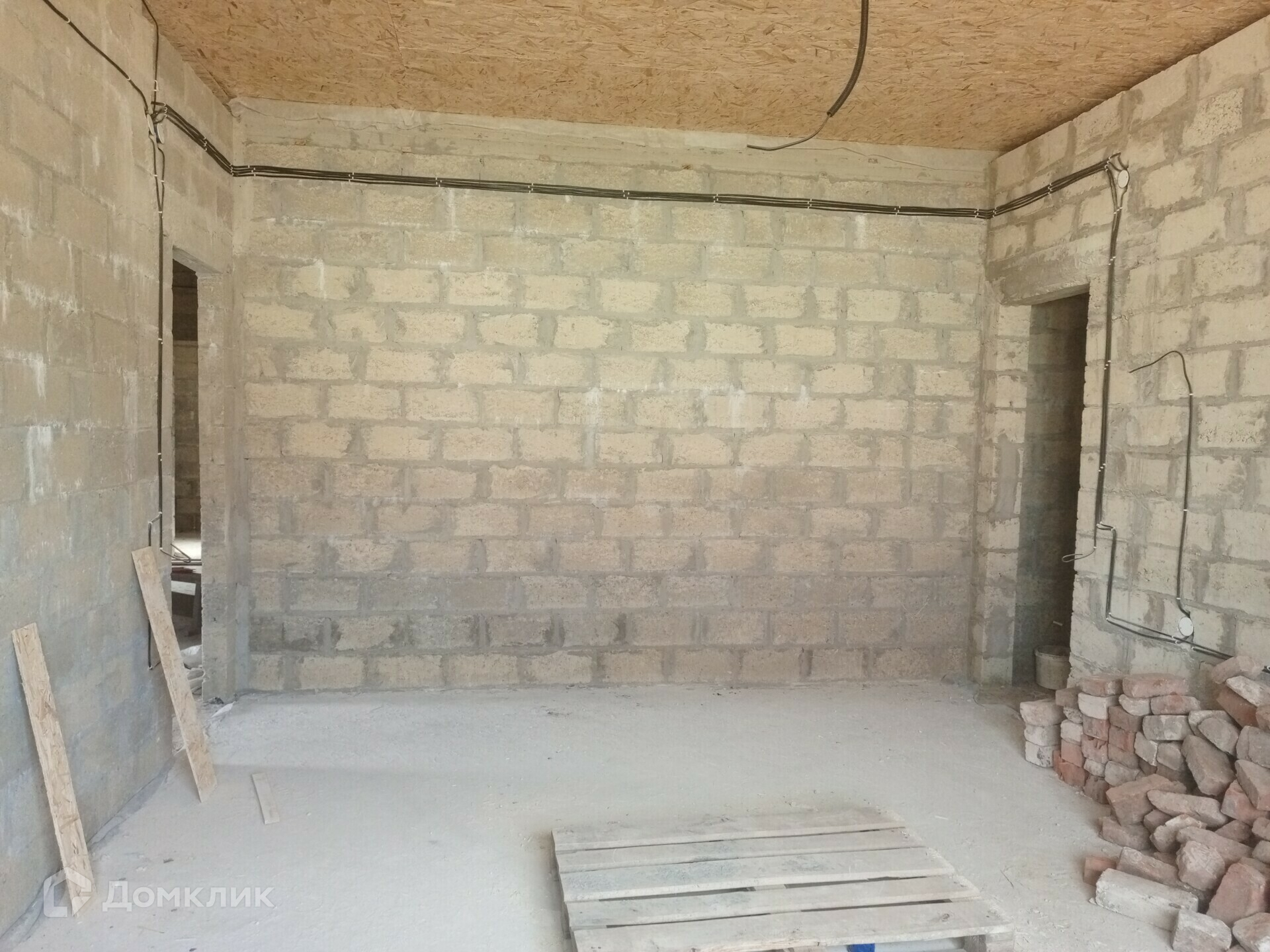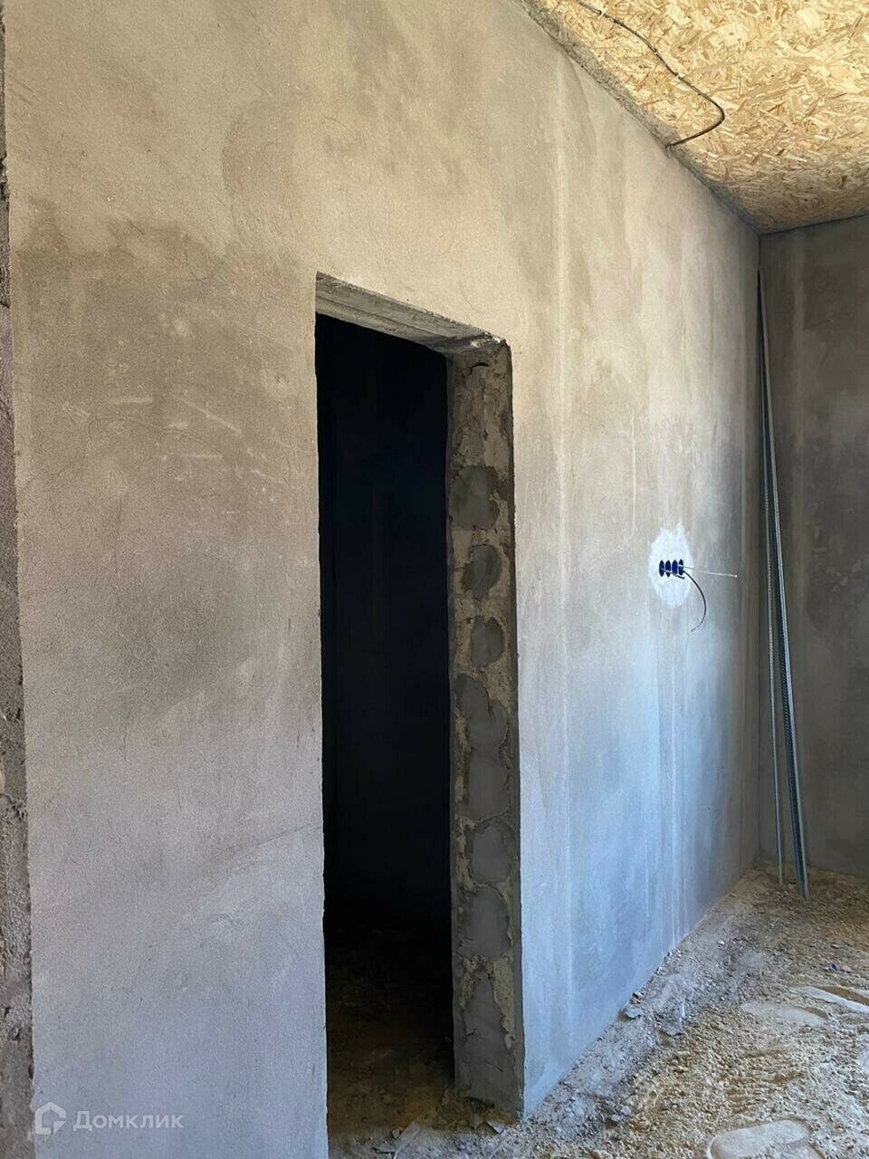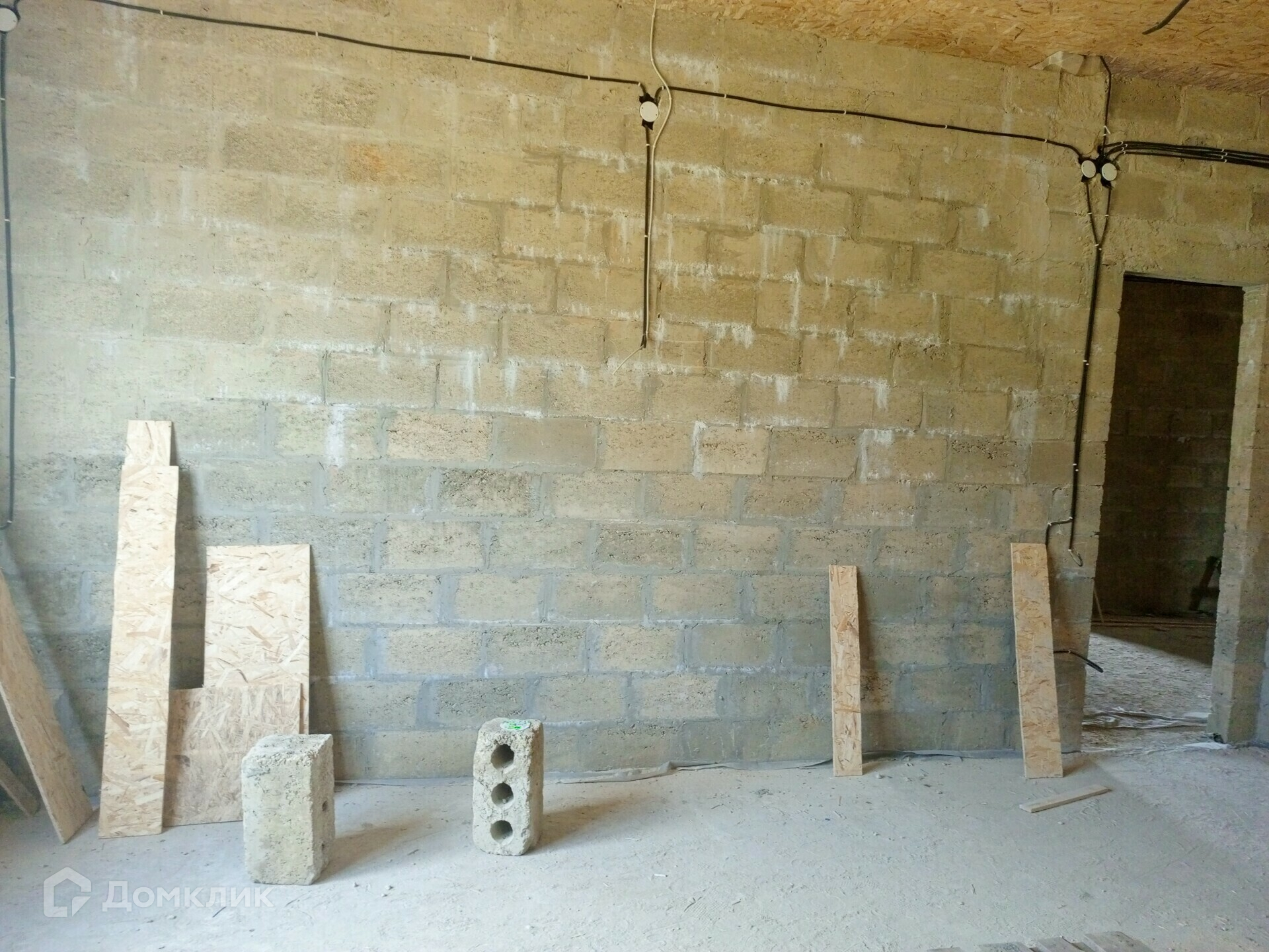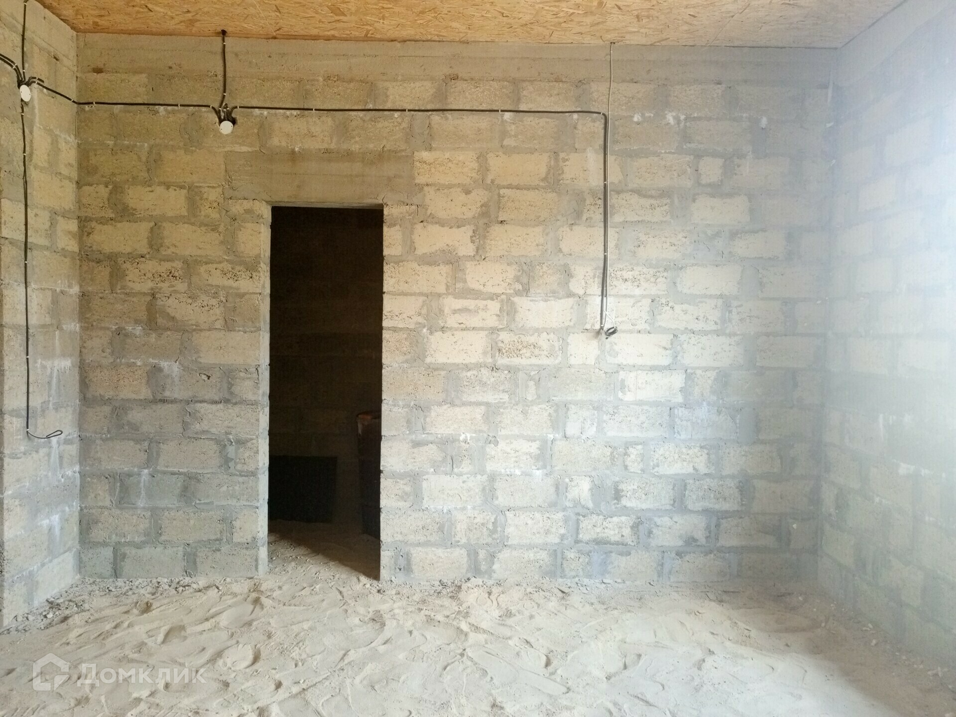 Отделка в доме: Залит черновой пол там, где будет проходить теплый пол. Стены отштукатурены, по всему дому проведена проводка. Потолок утеплен и подбит OSB-9. Входная дверь металлическая, по всему дому установлены качественные окна VEKA атермальное остекление, ширина профиля 70 мм., цвет профиля шоколадный.