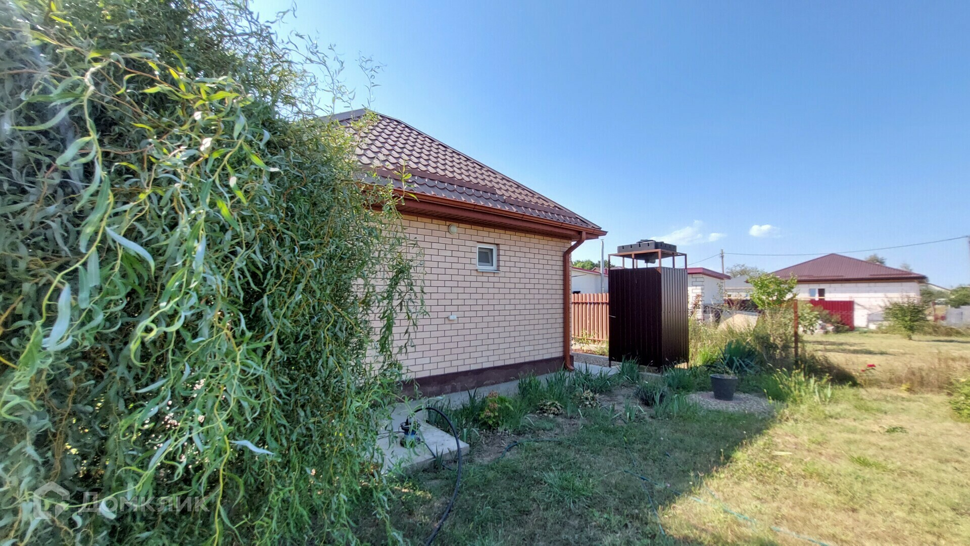 В доме две спальни, кухня, гостиная, коридор, совмещённый санузел. Дом 2015 года постройки, блочный, облицован кирпичом, крыша из металлочерепицы. В доме автономное газовое отопление, установлен новый котёл фирмы BOSCH, центральное водоснабжение, используется трёхфазная система электроснабжения мощностью 15 кВт, уложены тёплые полы. Комнаты меблированы, при продаже практически вся мебель, а также бытовая техника, остаётся в доме. При отделке комнат использовалась венецианская штукатурка, что очень практично, натянуты потолки, постелен ламинат, установлены новые радиаторы отопления, современные металлопластиковые окна.