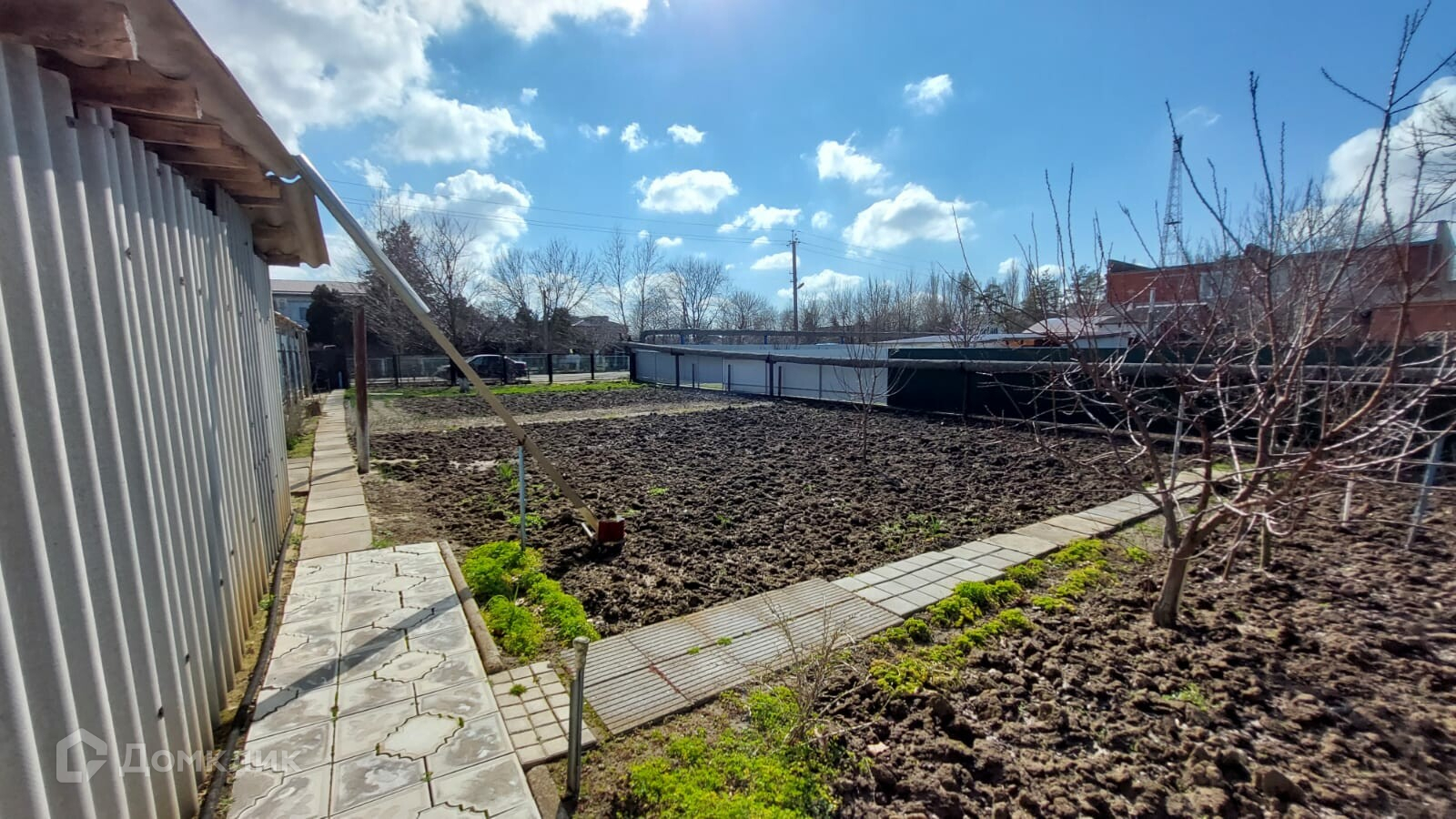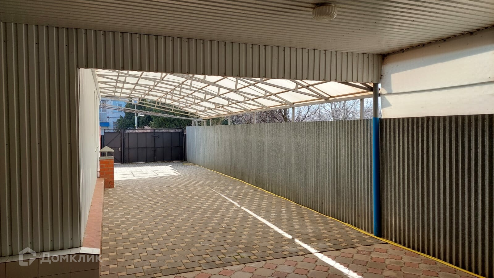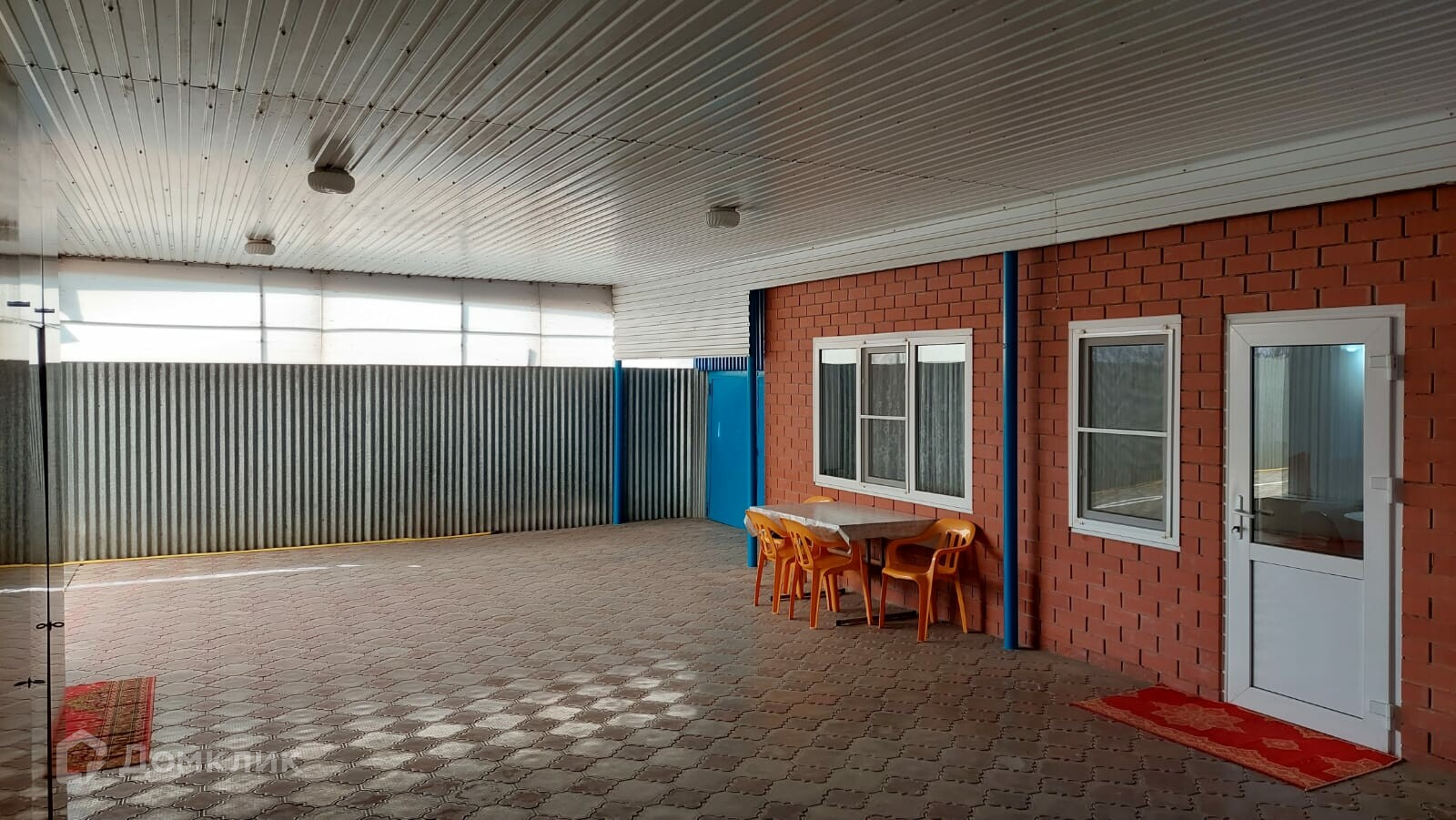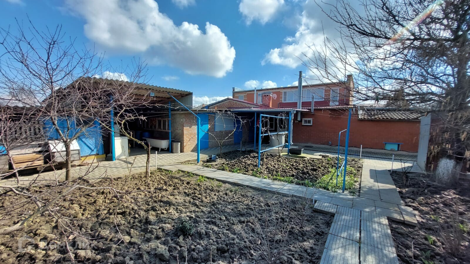 Имеется собственный внутренний огороженный двор, уложенный плиткой. Во дворе расположен гараж, отдельная постройка, в которой есть две комнаты и совмещённый санузел.  Постройка имеет вход со двора и выход во внешний двор, смежный с участком. Внешний двор и участок ухожены, во дворе расположены несколько хозяйственных помещений.
