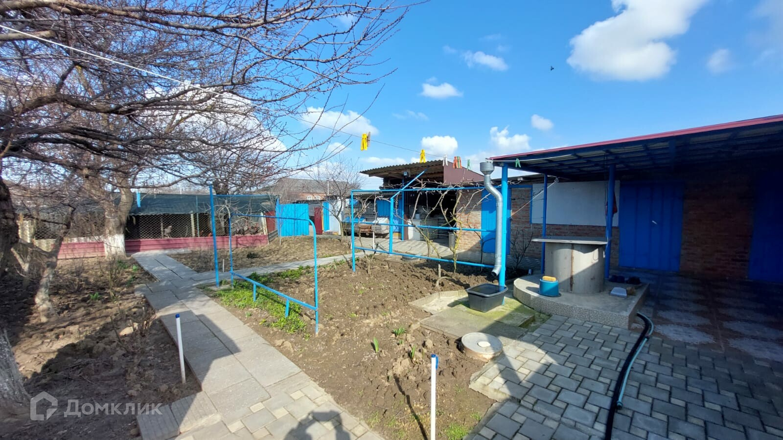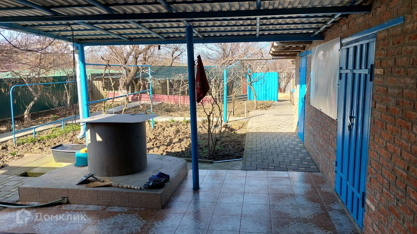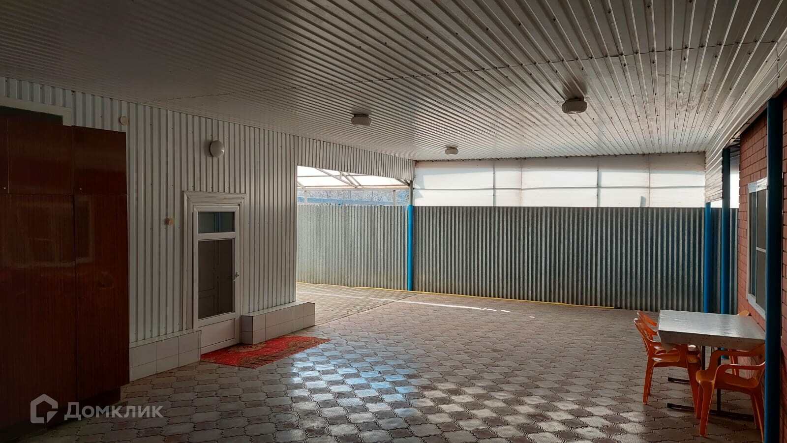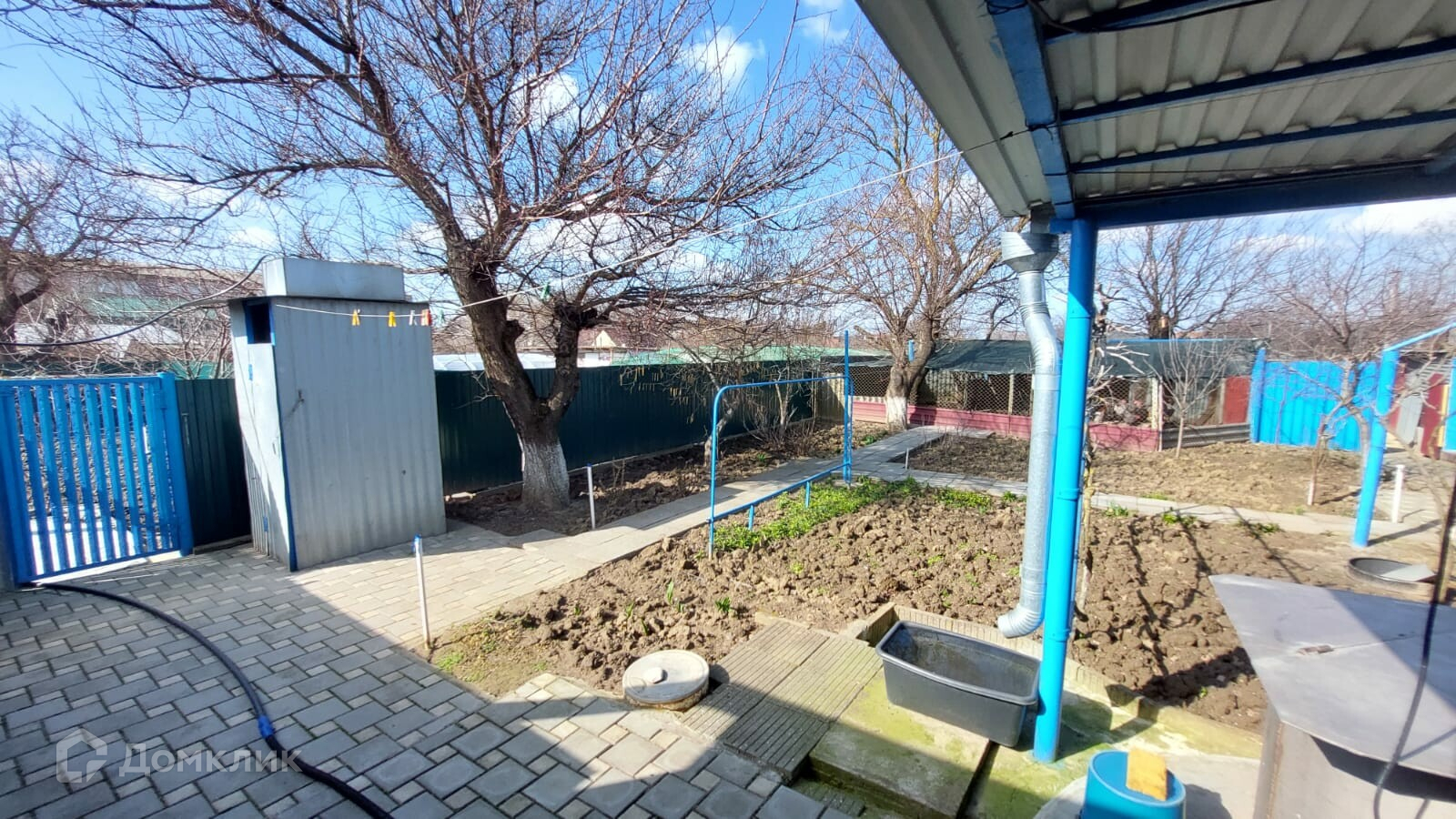 Имеется собственный внутренний огороженный двор, уложенный плиткой. Во дворе расположен гараж, отдельная постройка, в которой есть две комнаты и совмещённый санузел.  Постройка имеет вход со двора и выход во внешний двор, смежный с участком. Внешний двор и участок ухожены, во дворе расположены несколько хозяйственных помещений.