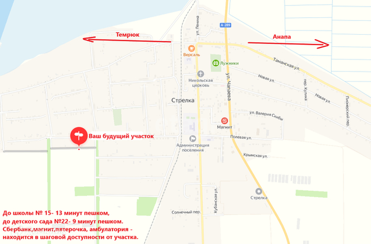 Продается участок в поселке Стрелка в новом развивающемся районе.