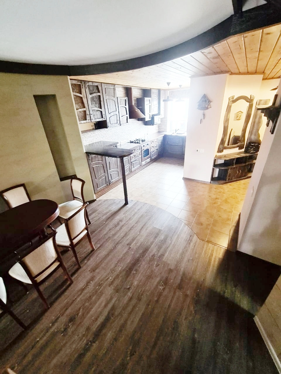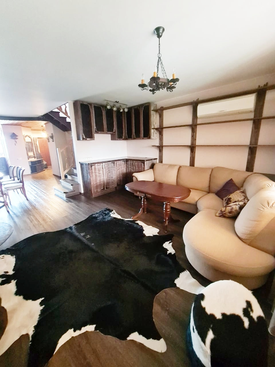 Предлагаемое жильё обустроено по типу Альпийского шале, дизайн в едином стиле. Делалось под себя, для круглогодичного отдыха семьёй. Сдаётся впервые. Первый этаж: зона кухни, столовая, гостиная с выходом на террасу и двор, камин, место для стирки, 1 с/у, 2й этаж: спальня, детская с балконом и гардеробной, ванна с совмещ. с/у. Есть третий уровень, там гостевой диван либо место для уединения... Кухня хорошо укомплектована бытовой техникой известных марок: 4х-комфорочная газовая плита с духовым шкафом и вытяжкой, встроенная посудомоечная машина, СВЧ, В каждом помещении кондиционеры; тёплый пол, Договор на обслуживание газового котла. Как таковых привычных квитанций на Ком.услуги нет, прямые договора с поставщиками услуг.. электричество, газ - по счётчику, вода и водоотведение так же.