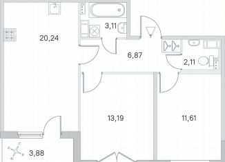 2-комнатная квартира на продажу, 64.2 м2, Львовская улица, 23к2