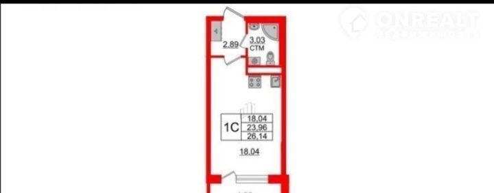 Квартира студия, 24 м2, этаж 2 / 4, на продажу в посёлке Стрельна