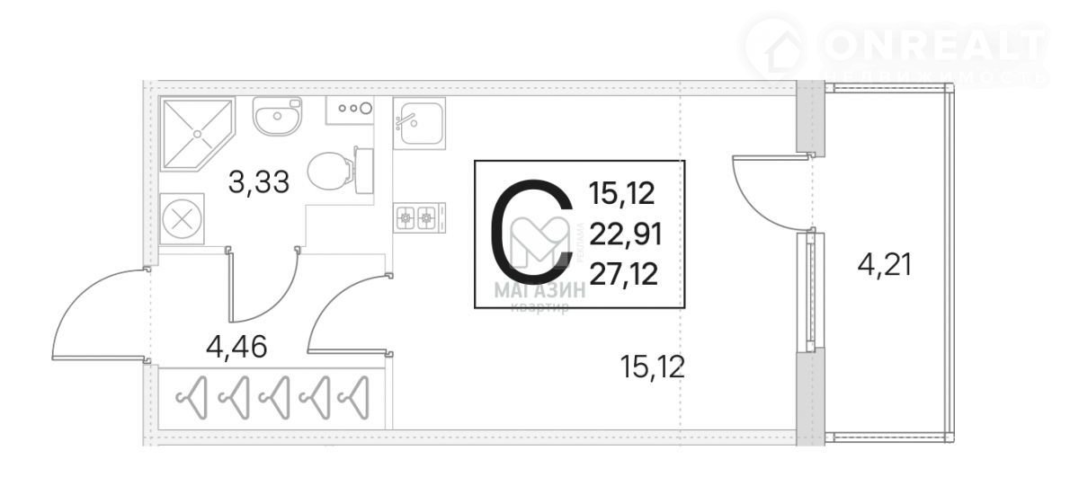 Общая площадь 22.9 м2
