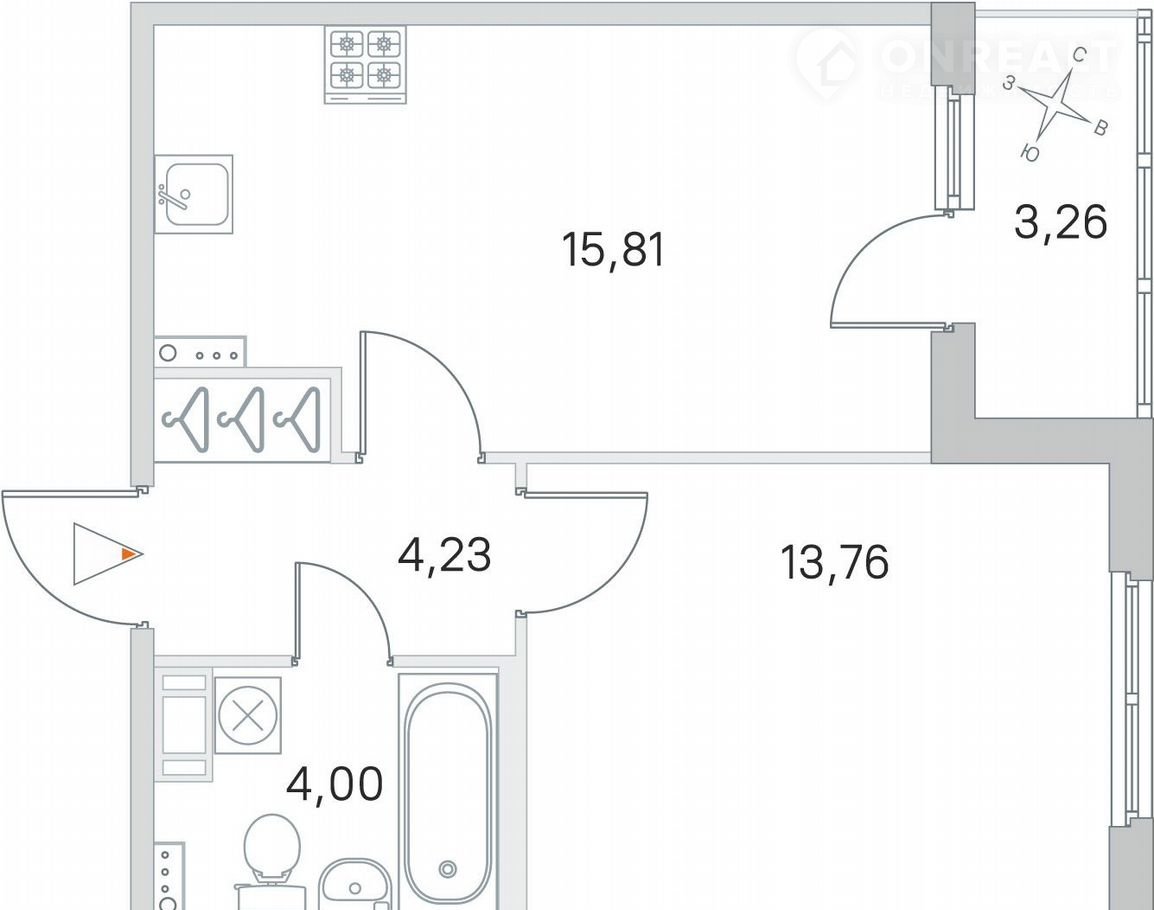 Общая площадь 39.4 м2