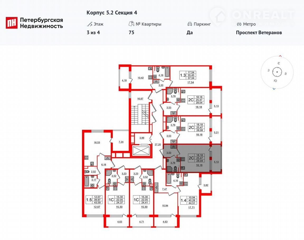 Общая площадь 25.5 м2