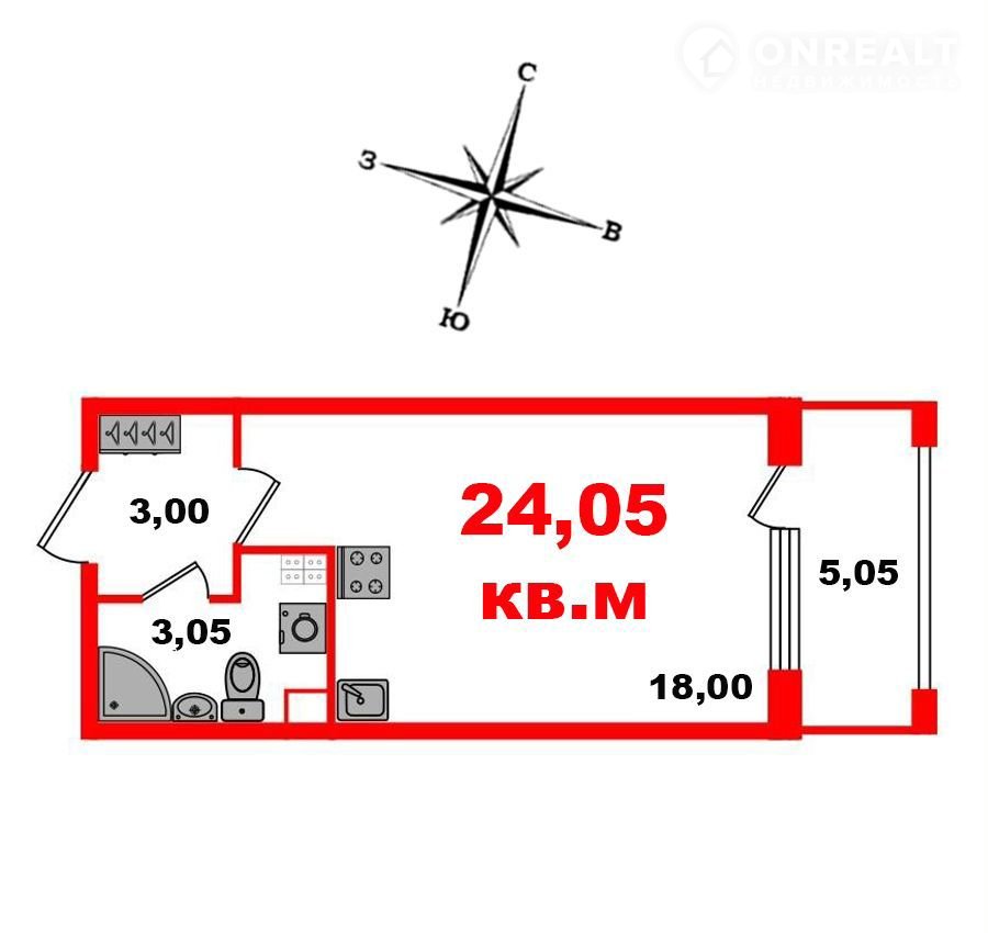 Общая площадь 24.1 м2