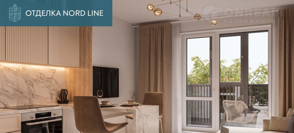 Отделка Nоrd Linе Whitе вдохновлена скандинавскими интерьерами, лаконичными формами и природными фактурами. Для напольных покрытий использован кварцвинил светло-серого оттенка. Во всех квартирах установлены входные двери с отделкой ПВХ панелями и белоснежные межкомнатные двери с надежной фурнитурой. В комнатах – гладкие флизелиновые обои под покраску, матовые натяжные потолки, современные белые высокие плинтусы с кабель-каналом, а также матовые серебристые выключатели и розетки. В ванной комнате - крупноформатная керамическая плитка Кеrаmа Маrаzzi и система «теплый пол». Установлена сантехника от ведущих российских и европейских брендов, подвесная тумба с умывальником и зеркало. Напольное покрытие на балконах и лоджиях – керамогранит.