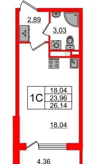 Общая площадь 26.2 м2