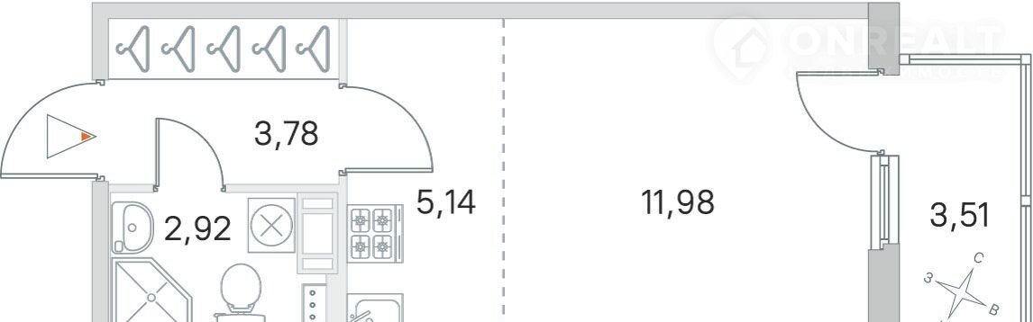 Общая площадь 24.9 м2