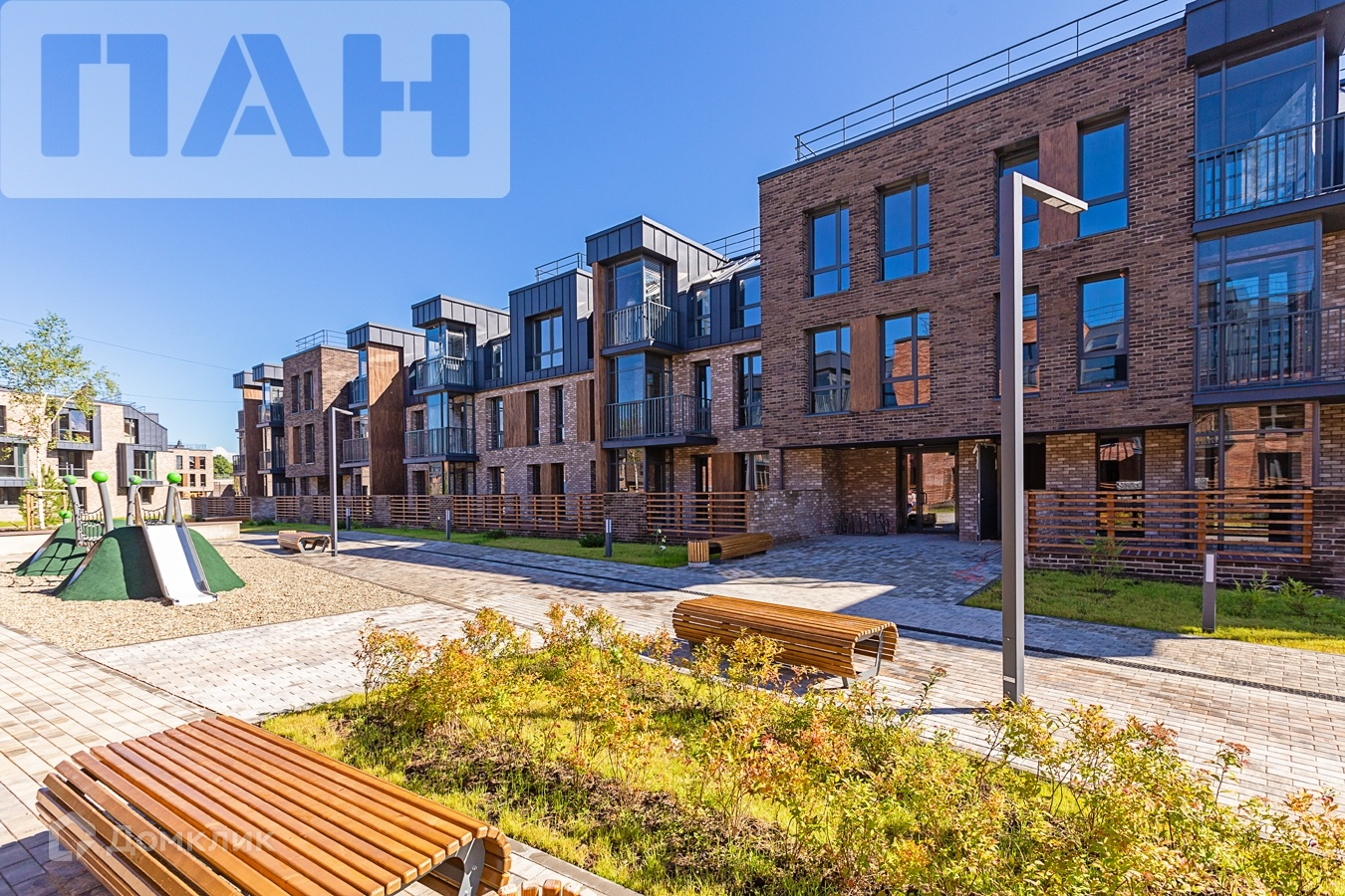 Малоэтажные дома построены из качественных материалов и напоминают коттеджи высокого класса - для жителей с хорошим вкусом.