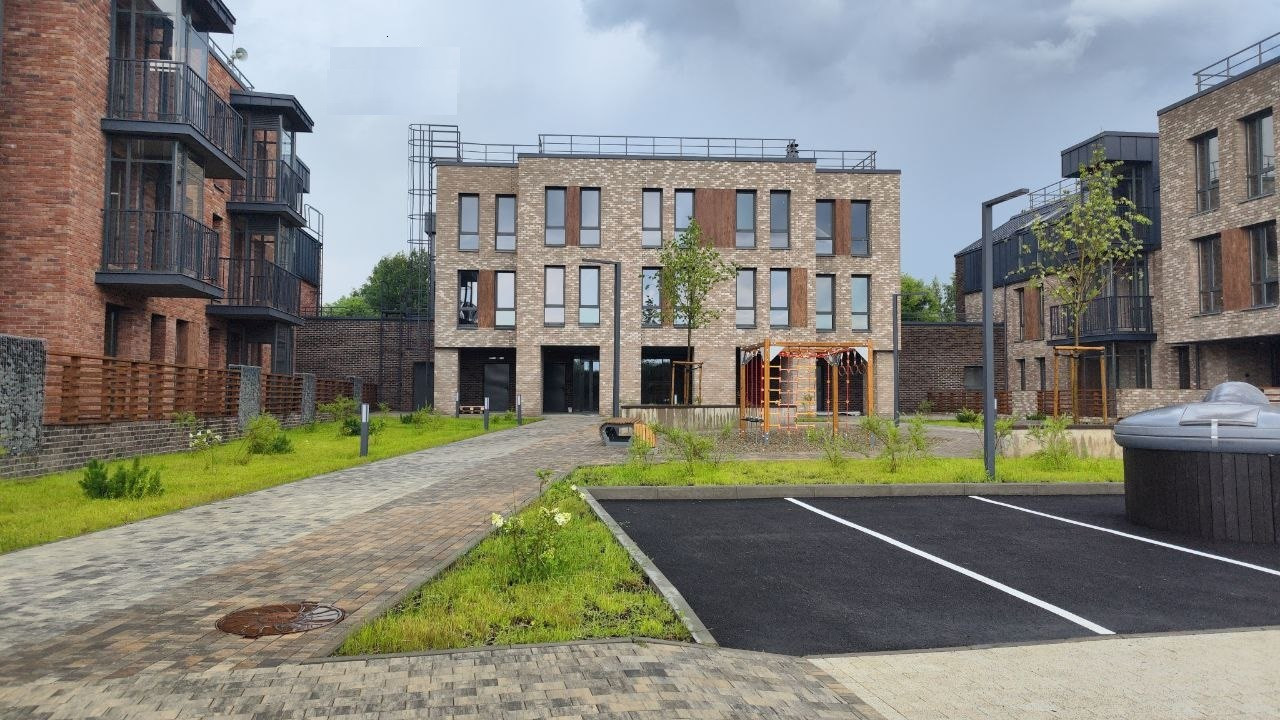 в парадных предусмотрены лифты. Все дома комплекса трехэтажные,