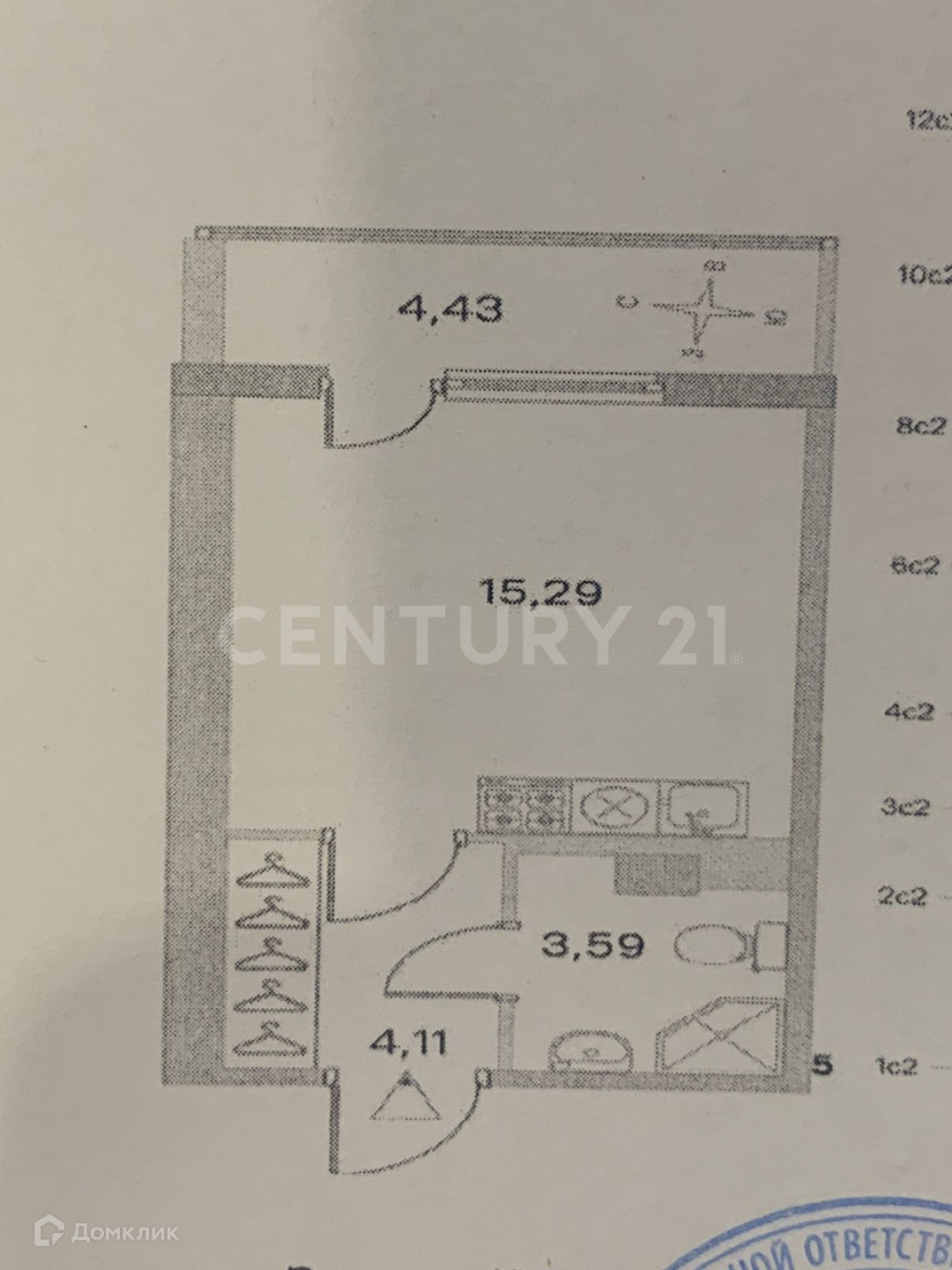 Общая Площадь: 27.42 м.кв. ( комната 15,3 м.кв + 4.43 м.кв. лоджия)