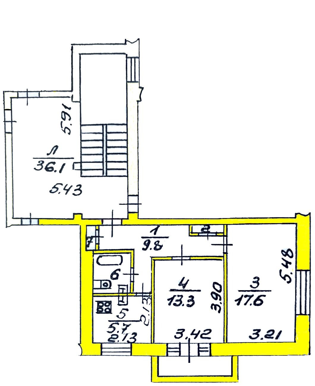 Площадь кухни 5.7 м2