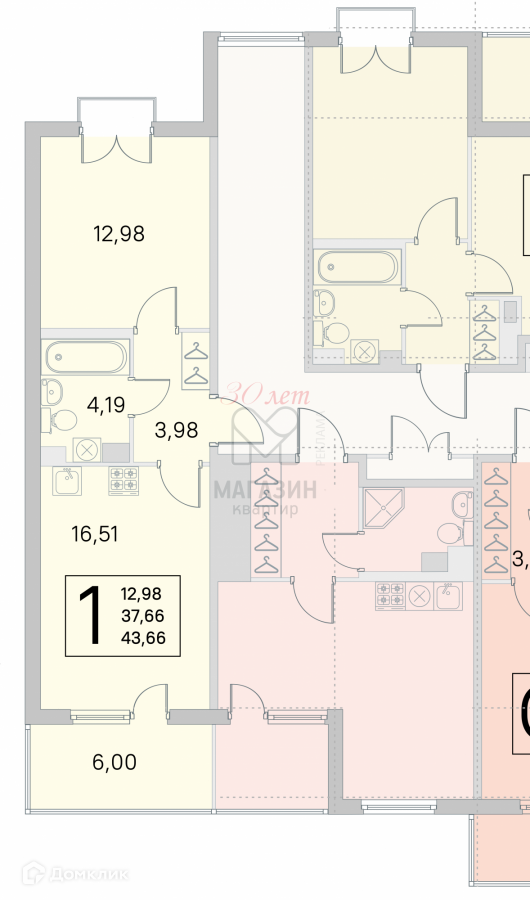 Общая площадь 43.66 м2