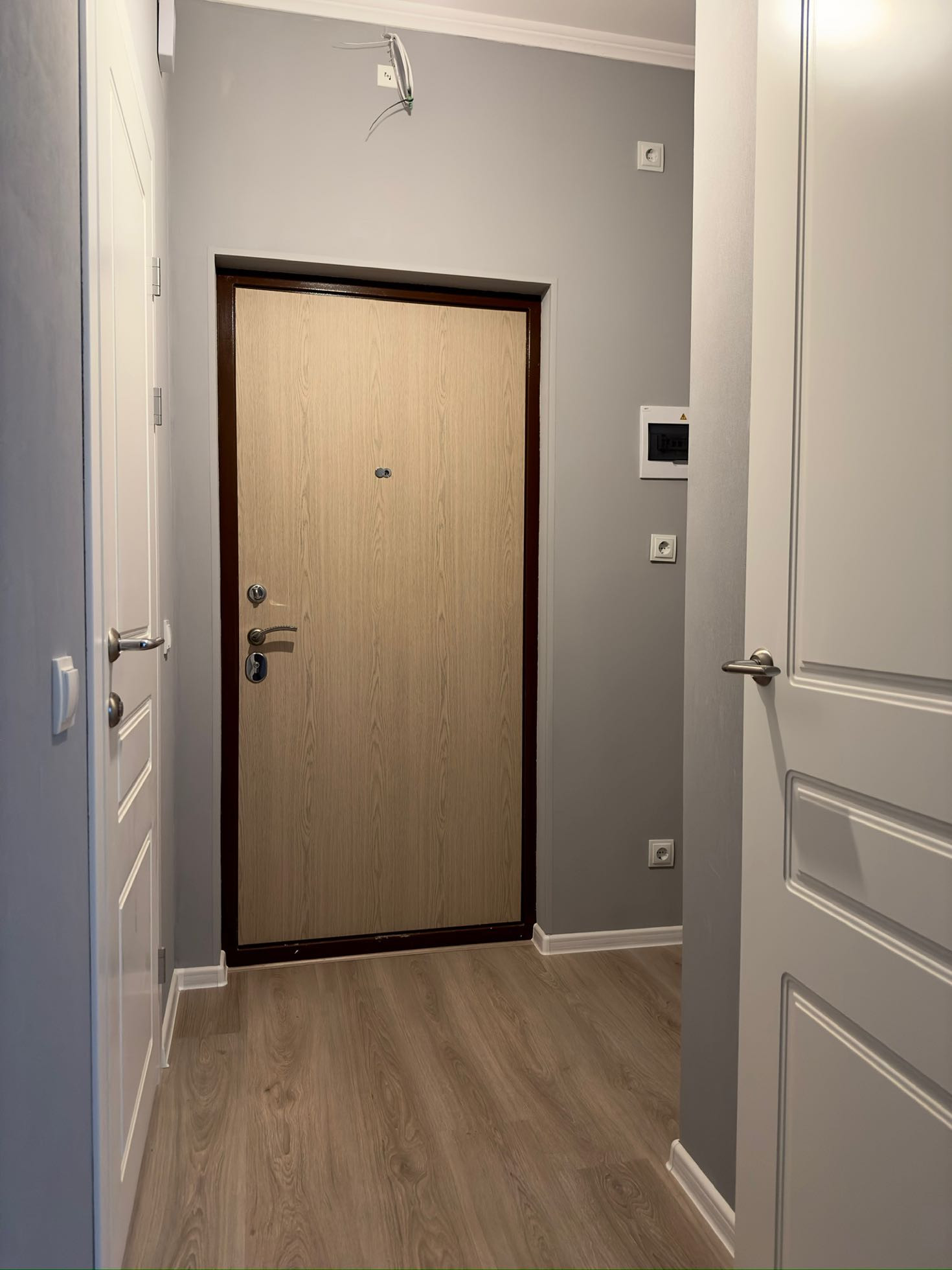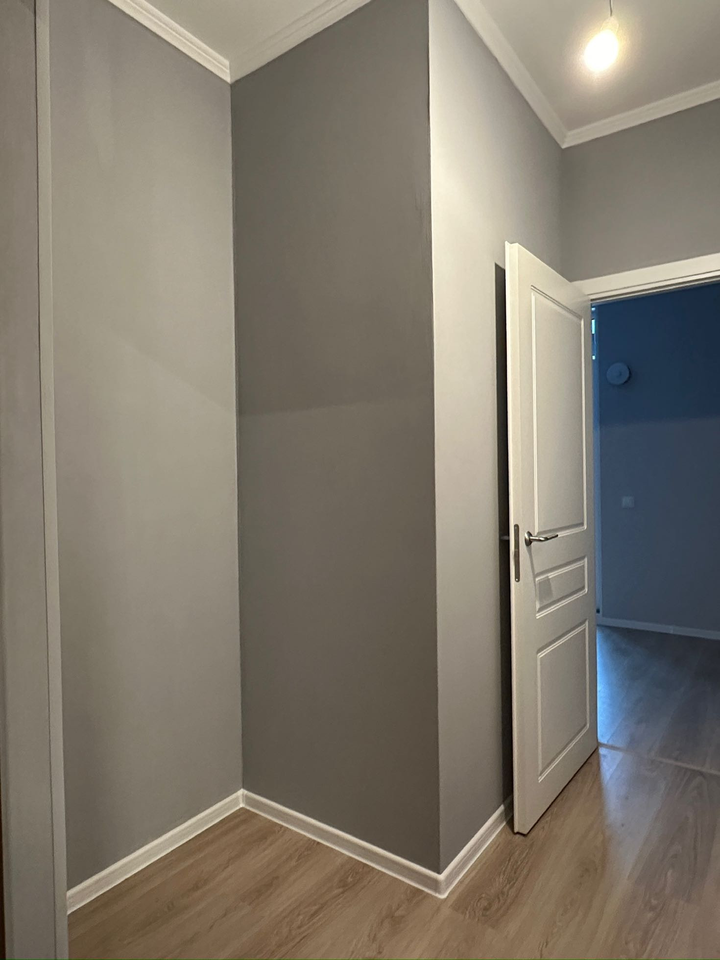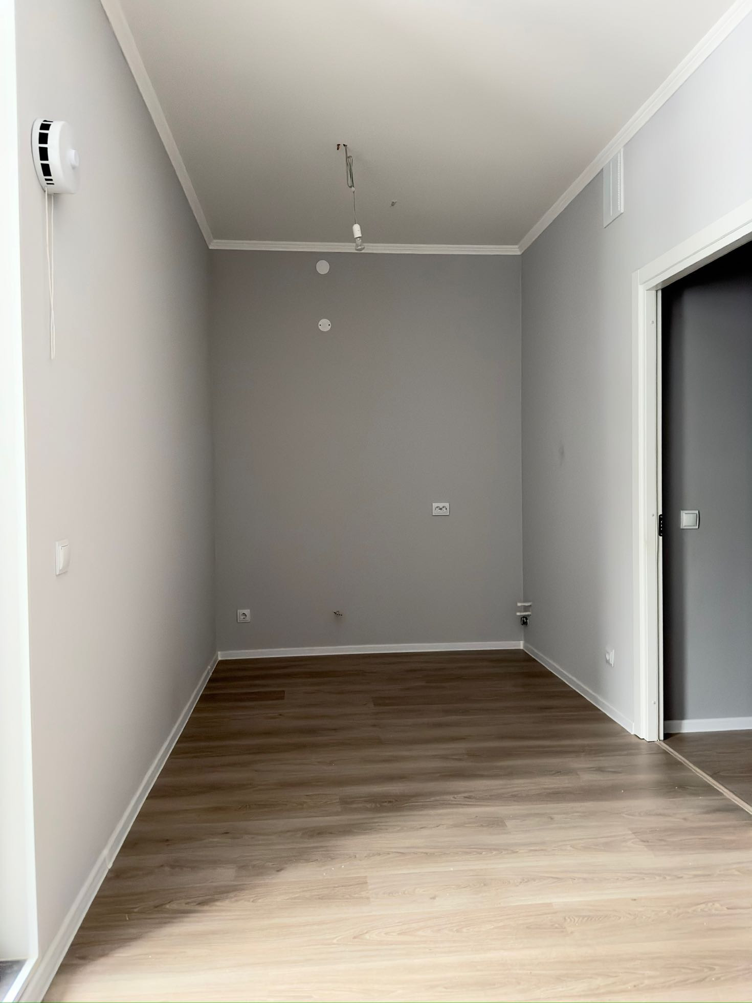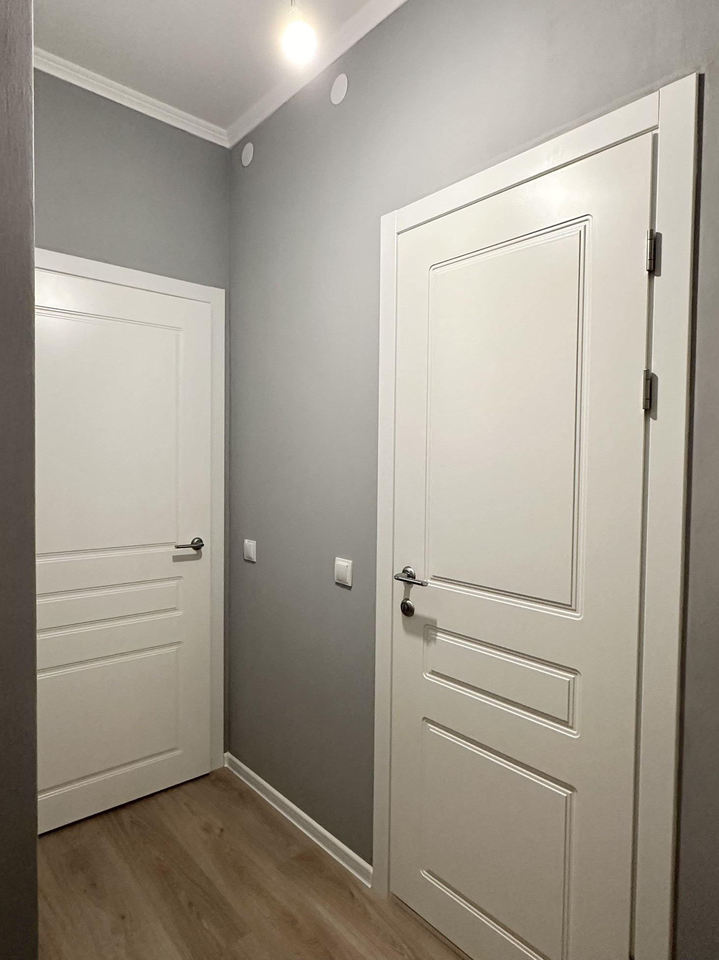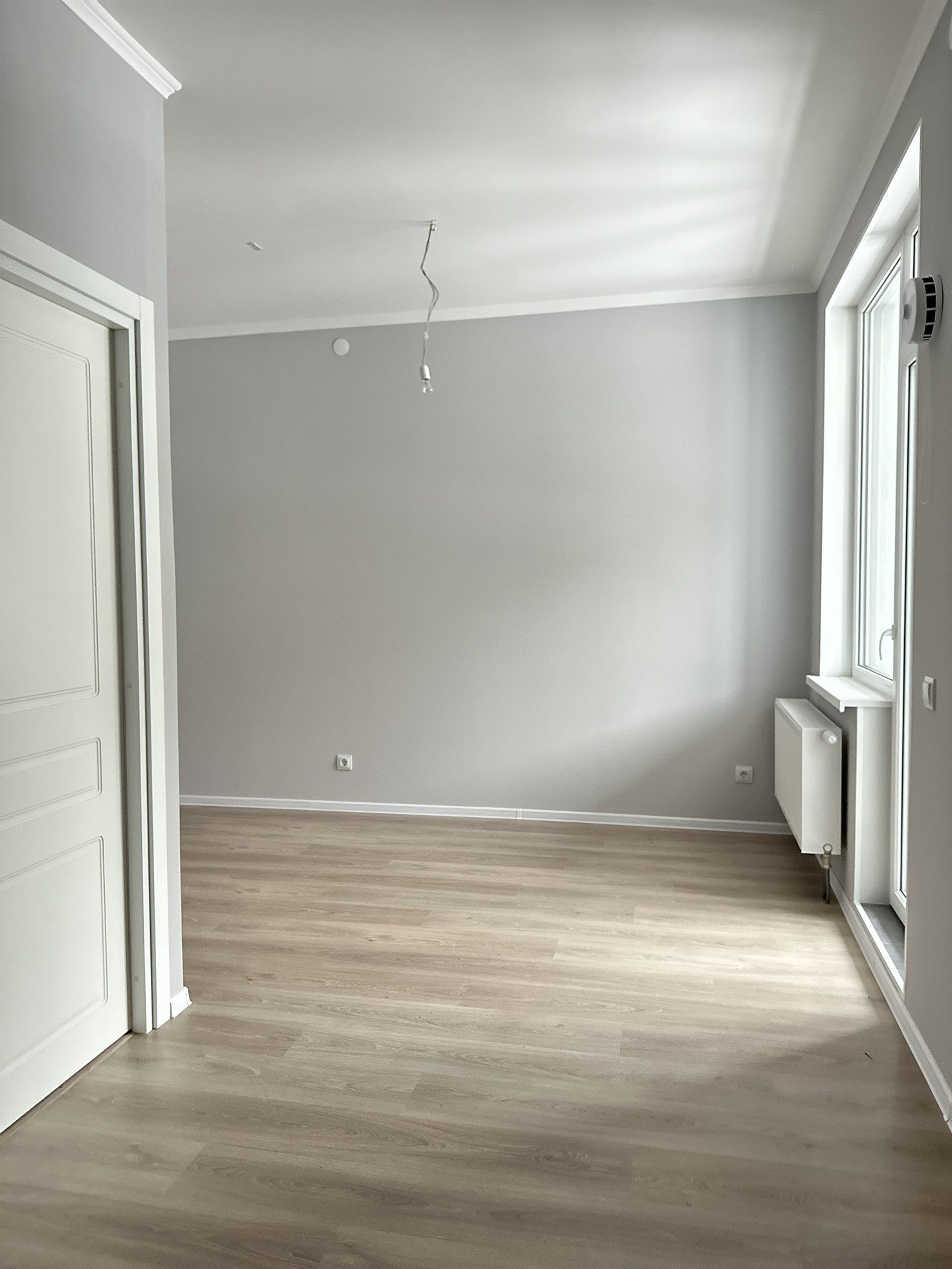 В квартире произведена замена балконного остекления, стяжка пола от застройщика заменена на ламинат. В сан узле сделана инсталляция, что в разы улучшило визуал. Стены выкрашены в спокойные,  благородные оттенки.