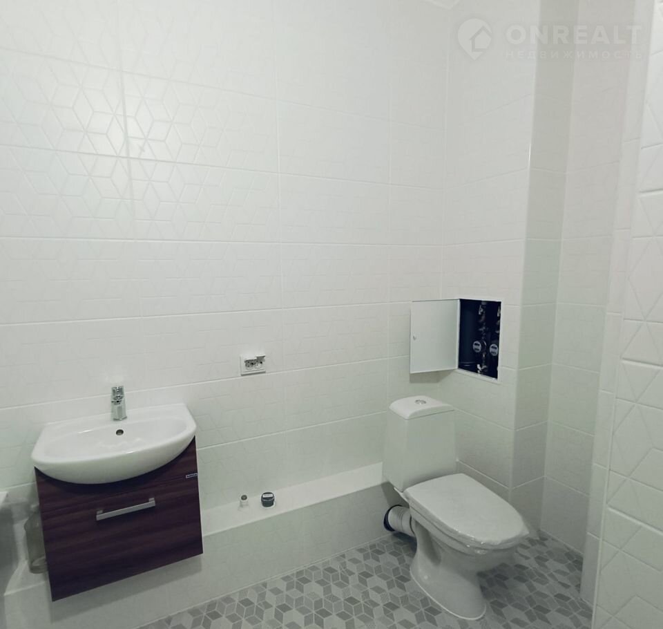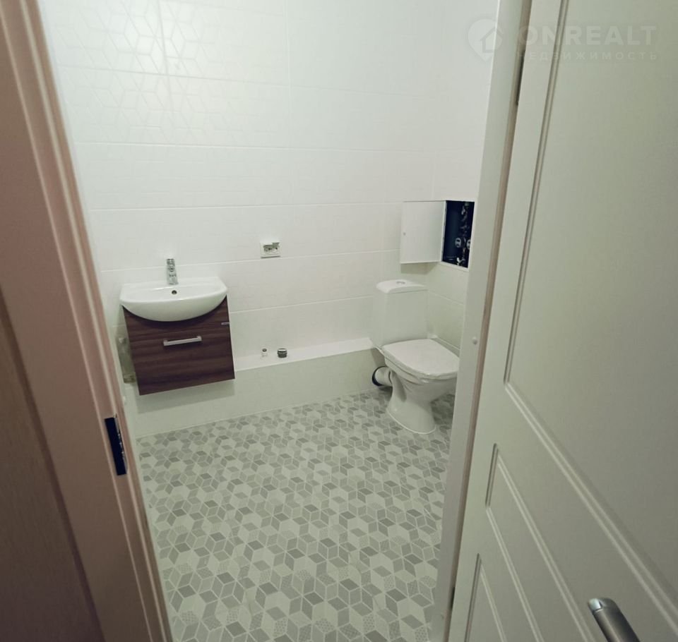 - Cтены: винилoвые обои нейтpaльных тoнов, сaнузeл — кеpамичeская плиткa