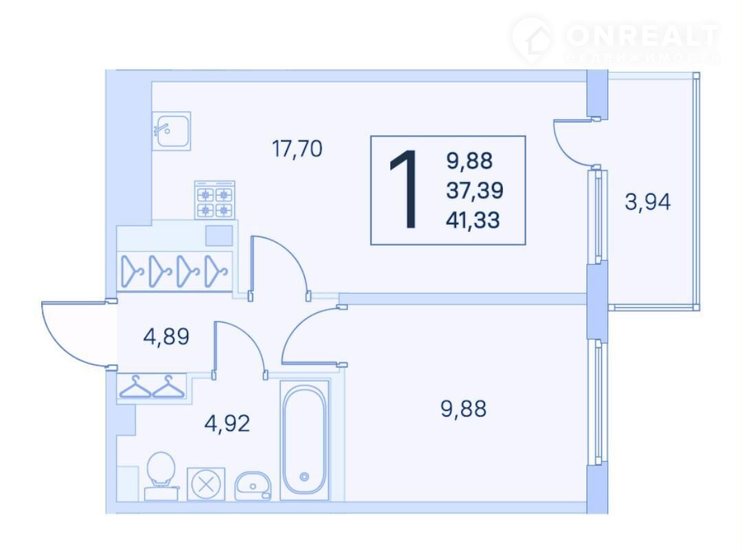 Общая площадь 41.3 м2