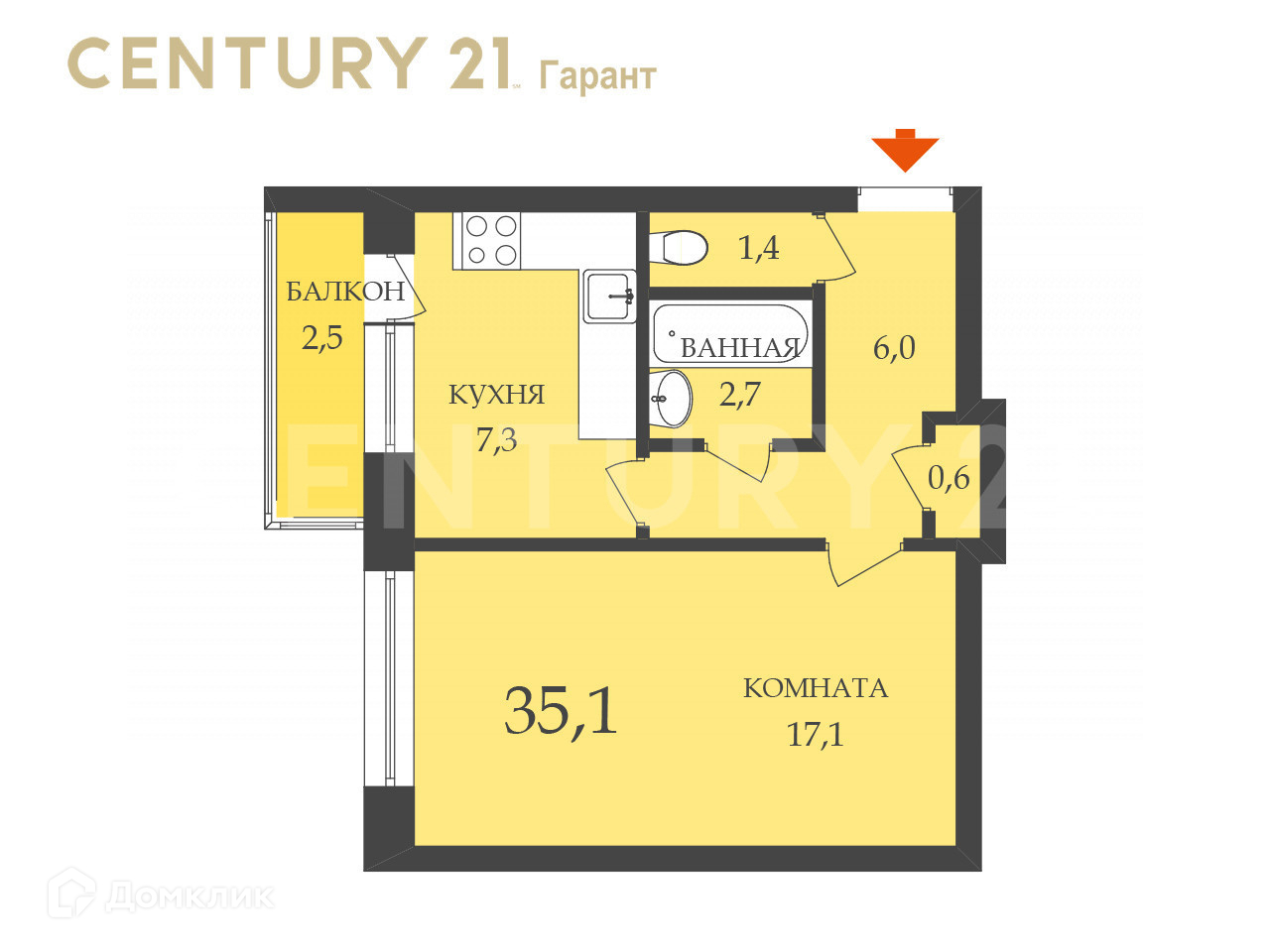 Общая площадь 35.1 м2