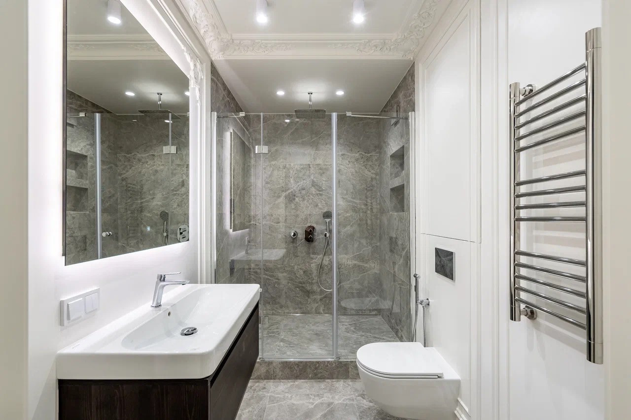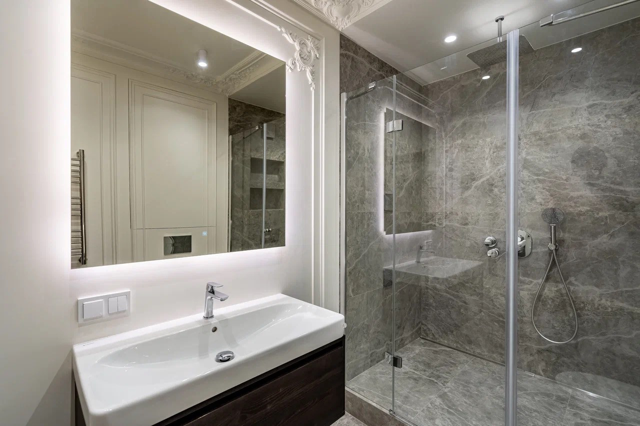 - Установлены 2 зеркала с подогревом и подсветкой в санузлы;