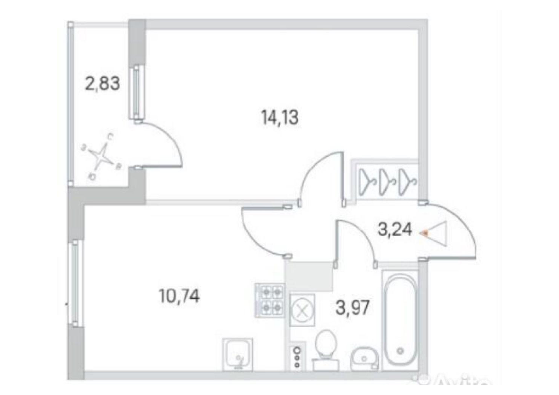 Общая площадь 31.6 м2