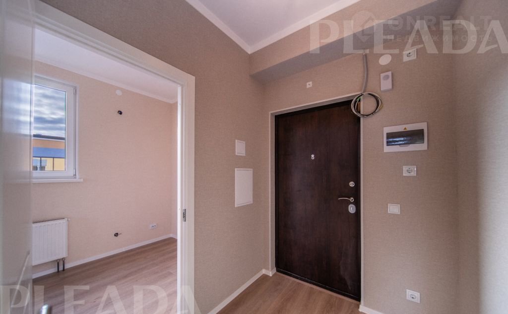 Выполнена электроразводка, установлены радиаторы отопления, розетки и выключатели, а также счётчики воды и электричества.