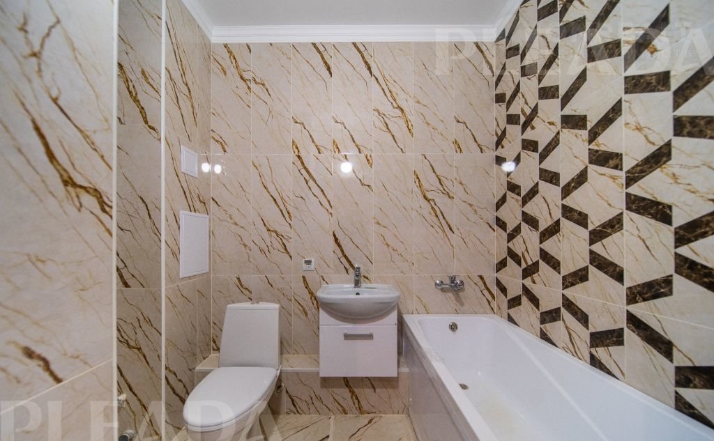 Керамическая плитка на стенах и полу в санузлах. Комплект сантехники.