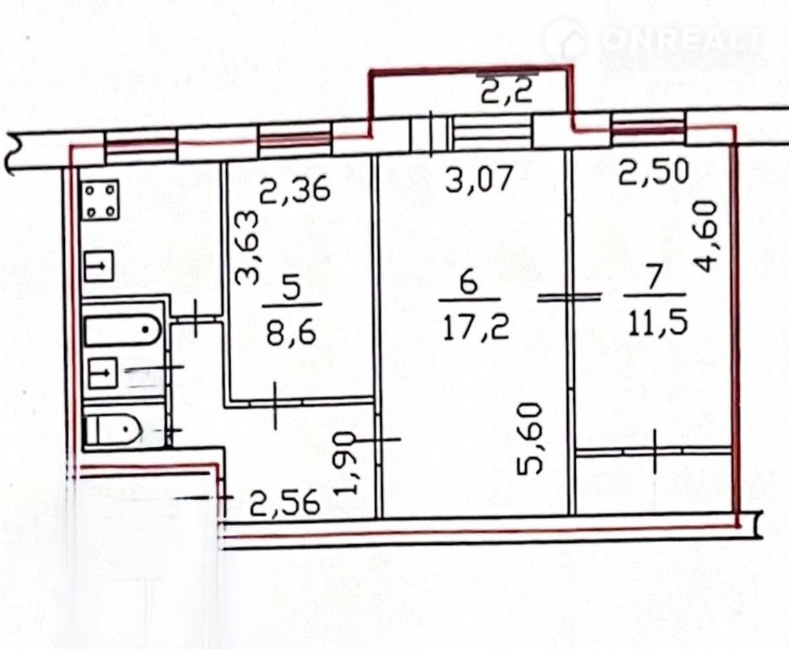 Общая площадь 55 м2
