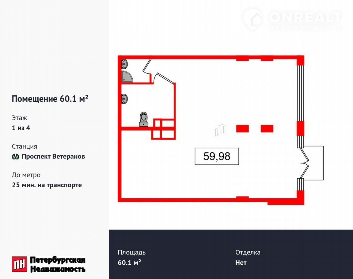 Помещение свободного назначения, 60.1 м2, на продажу в посёлке Стрельна, проспект Будённого, 20к1