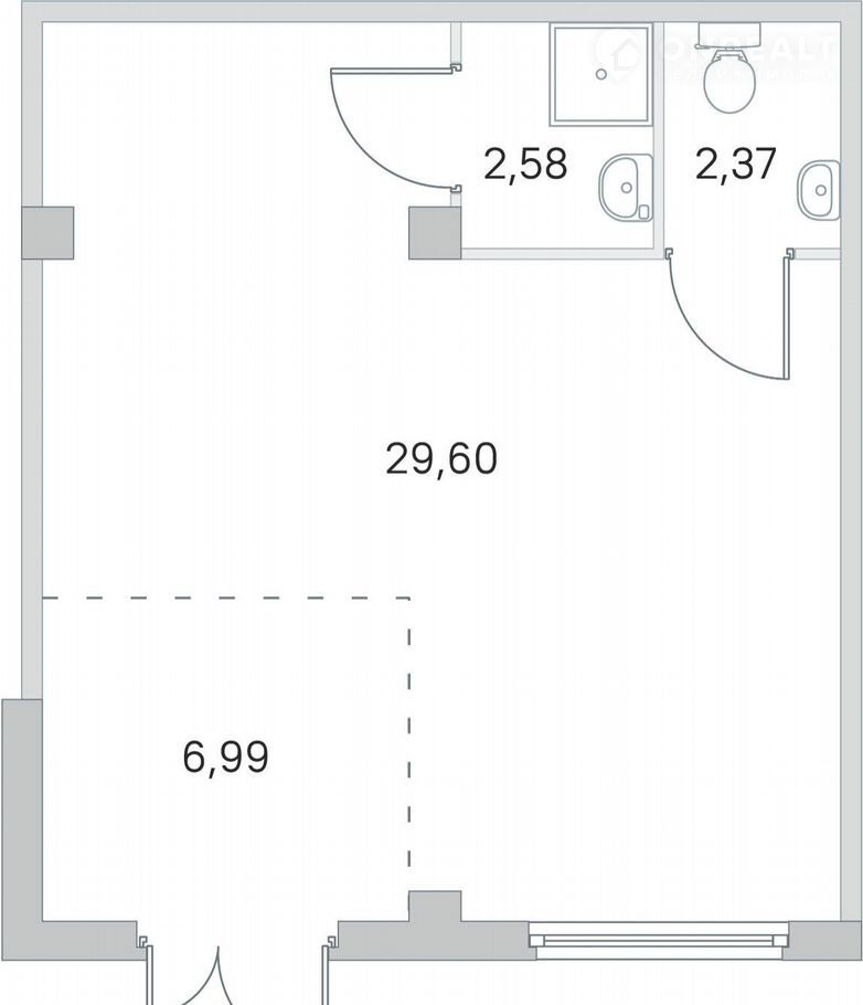 Общая площадь 41.3 м2