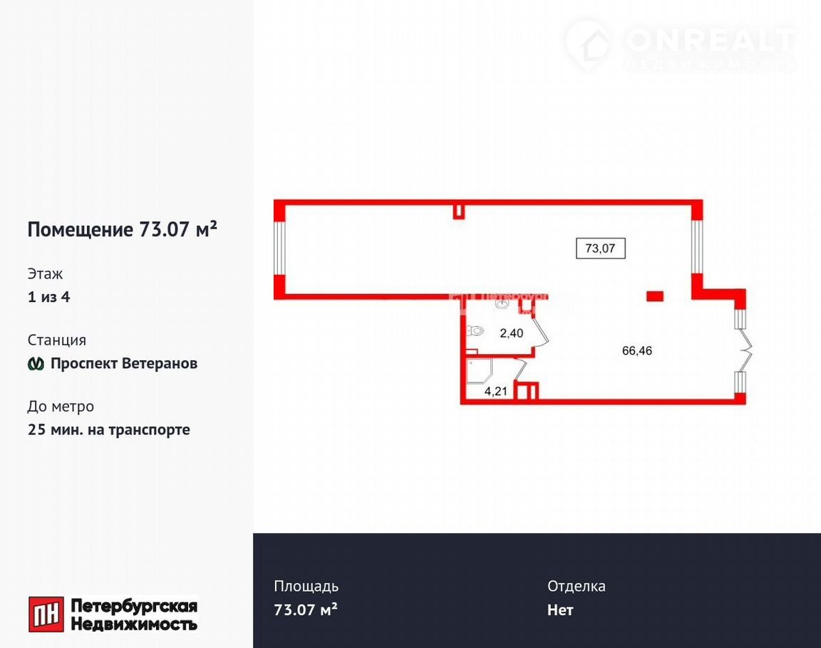 Помещение свободного назначения, 73.07 м2, на продажу в посёлке Стрельна